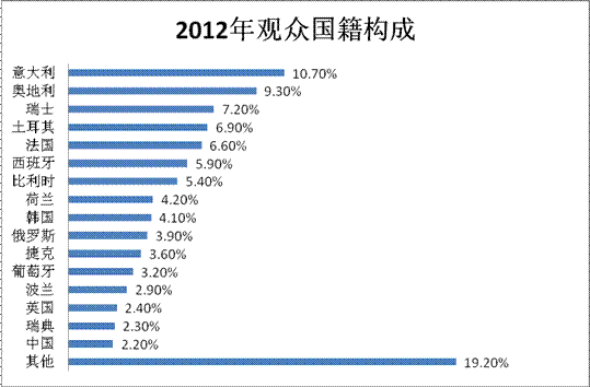 l 2012年觀(guān)眾數量:共計來(lái)自92個(gè)國家的55965位觀(guān)眾