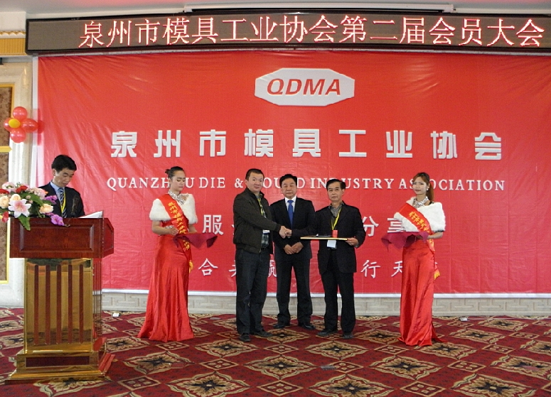 泉州市模具工業(yè)協(xié)會(huì )第二屆會(huì )員大會(huì )于2014年2月22日在泉州湖景酒店召開(kāi)。參加此次大會(huì )會(huì )議的會(huì )員有近百位會(huì )員。市政府經(jīng)貿委和民政局的領(lǐng)導出席了會(huì )議。福建省模具工業(yè)協(xié)會(huì )秘書(shū)長(cháng)黃肖誠以及兄弟協(xié)會(huì )如福州、廈門(mén)、三明模具工業(yè)協(xié)會(huì )代表列席參加。吳升長(cháng)主持會(huì )議。