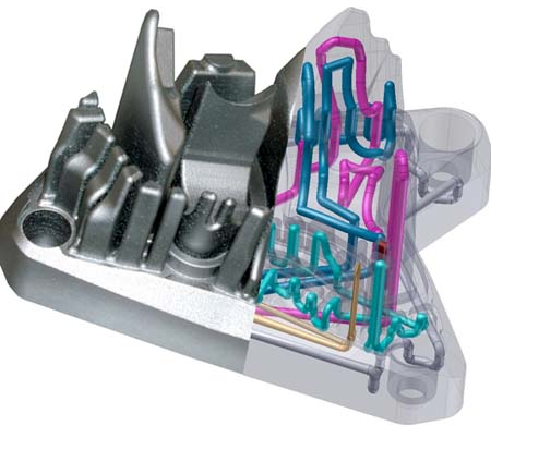 要求:不能采用傳統加工工藝的帶內部冷卻流道的長(cháng)銷(xiāo),高硬度、高壽命和高熱傳導性
