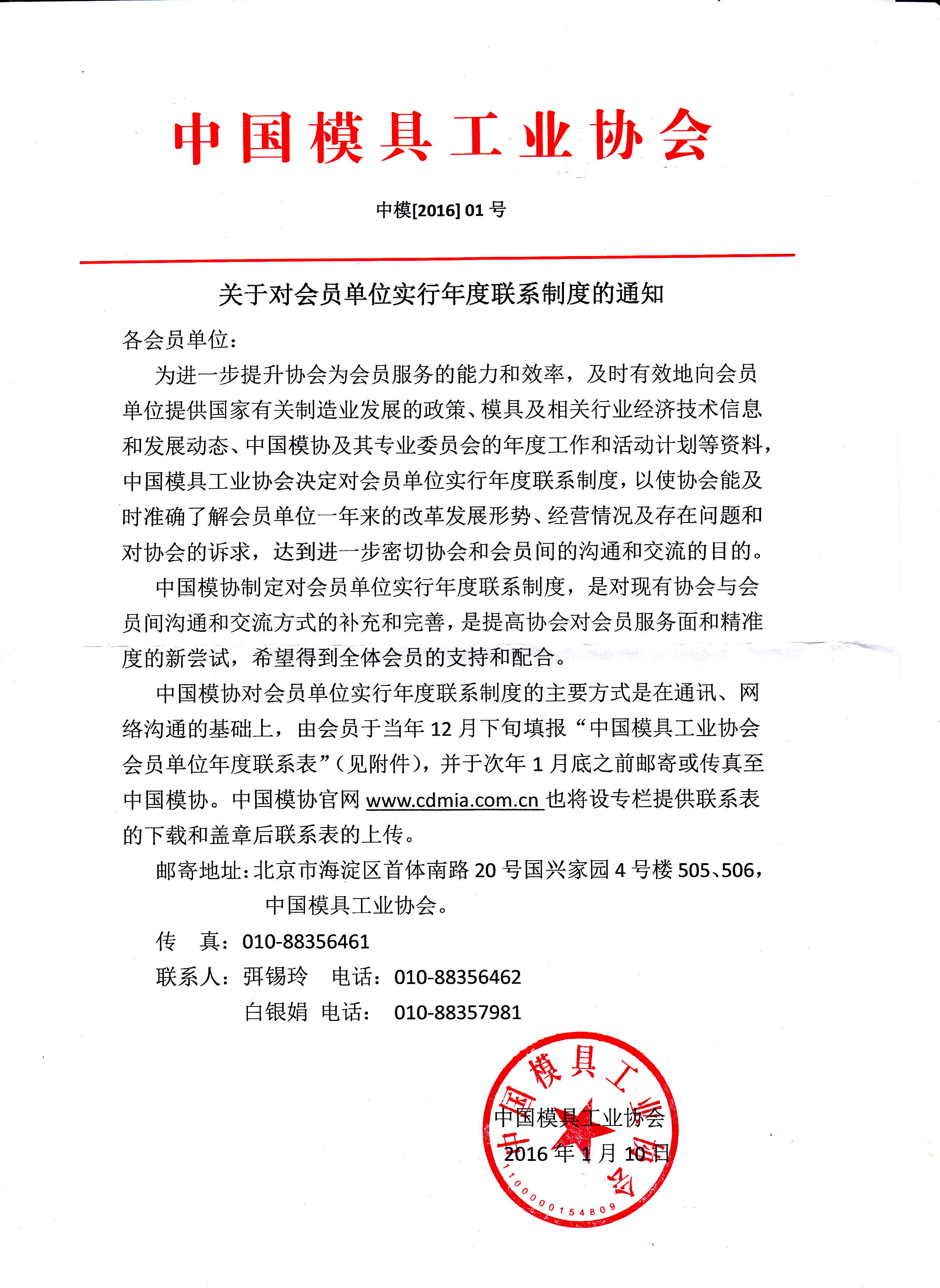 關(guān)于對會(huì )員單位實(shí)行年度聯(lián)系制度的通知