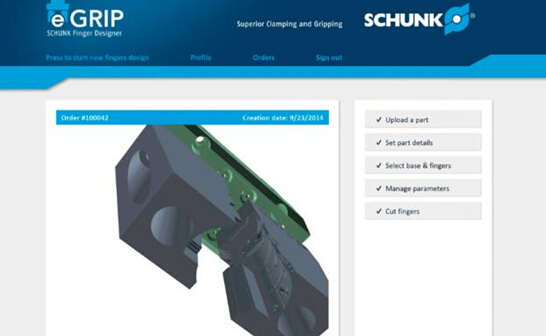 文件以及相關(guān)的數據,如物品的重量,夾具的底座,安裝方向,位置和部分夾鉗,應用程序會(huì )自動(dòng)生成優(yōu)化的夾指設計,并提供價(jià)格和交貨信息,即時(shí)在線(xiàn)訂購夾鉗。這些夾鉗通過(guò)通過(guò)