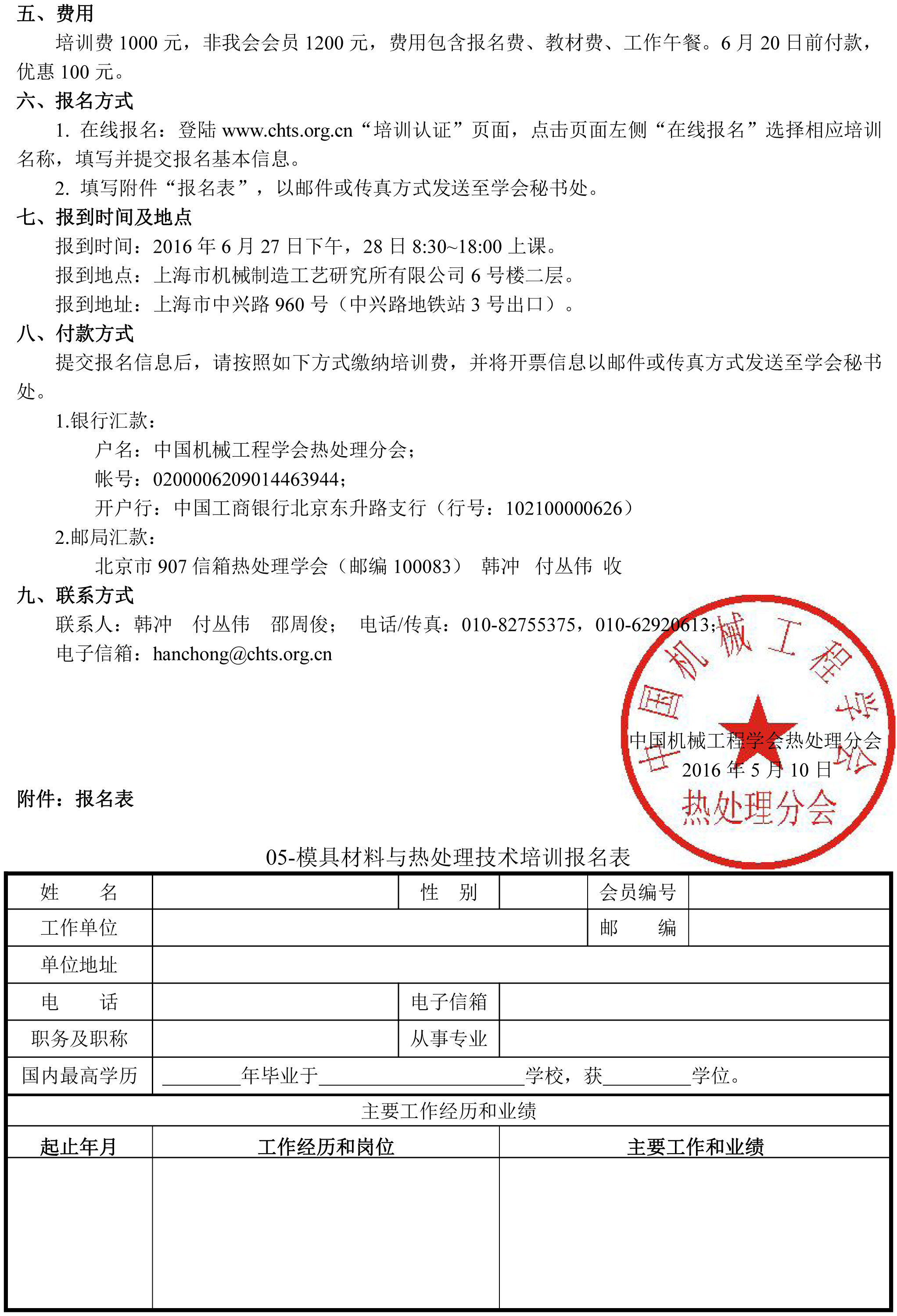 關(guān)于舉辦“模具材料與熱處理技術(shù)培訓”的通知