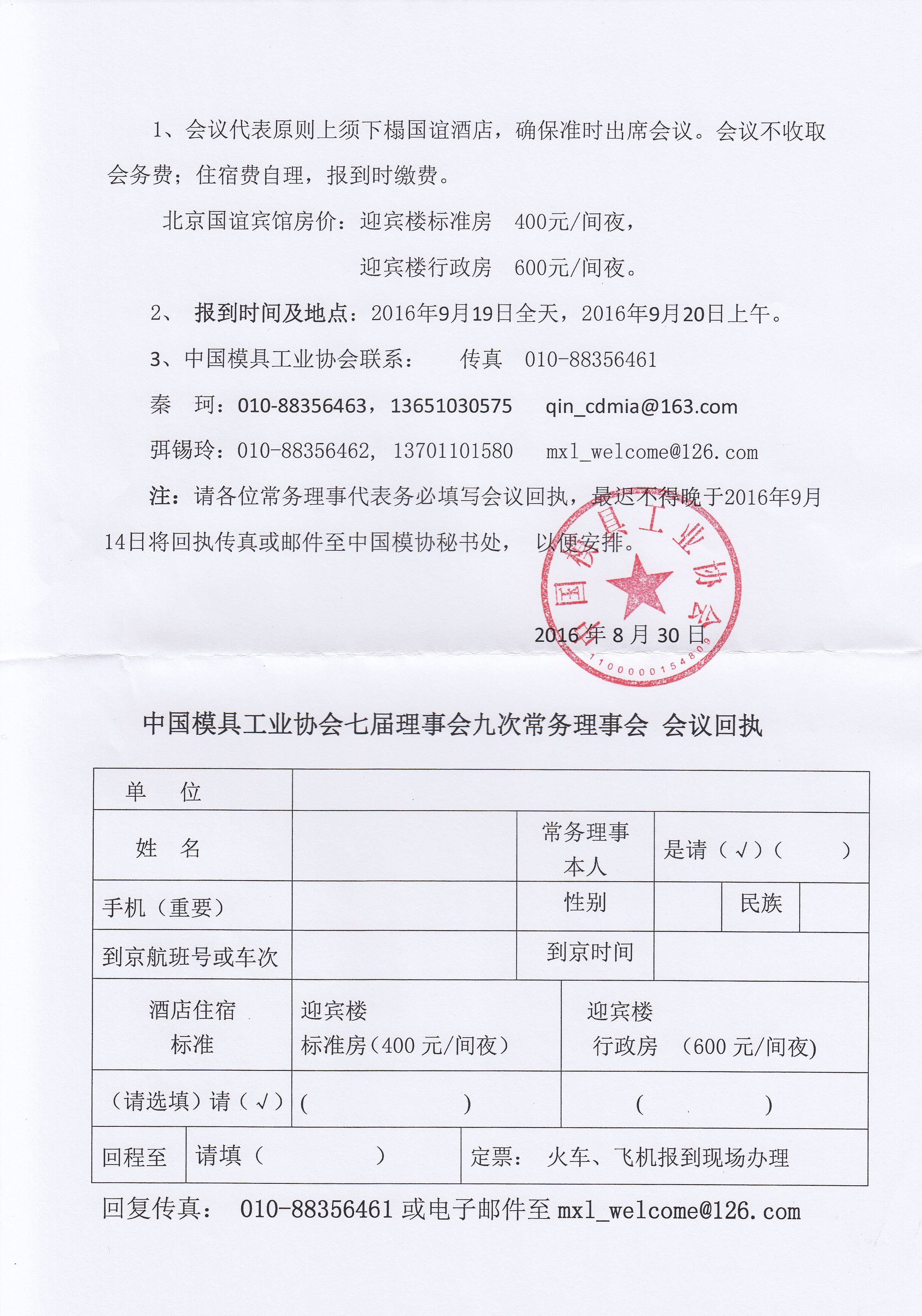 中國模具工業(yè)協(xié)會(huì )第七屆九次常務(wù)理事會(huì )會(huì )議通知