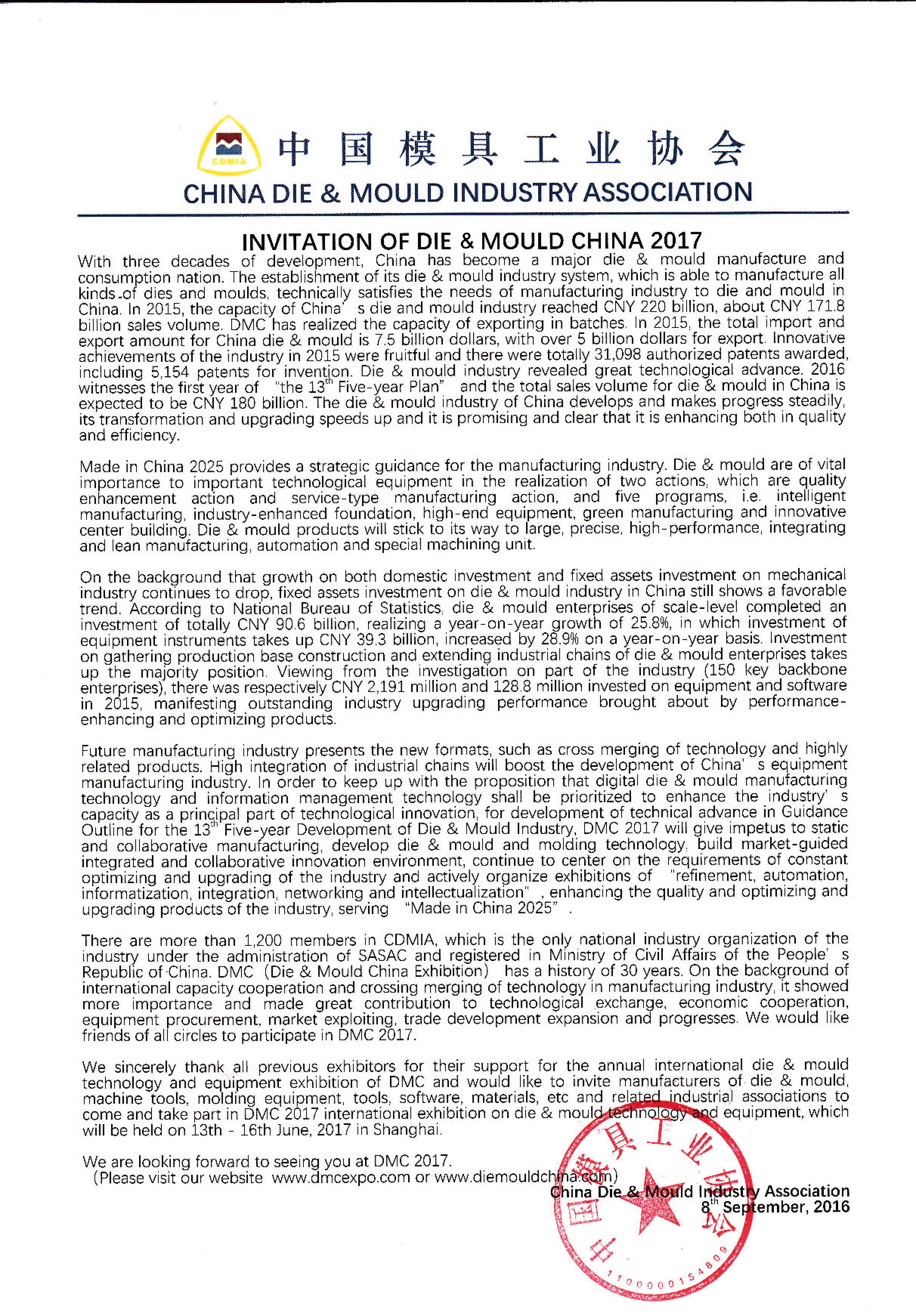 INVITATION OF DIE & MOULD CHINA 2017