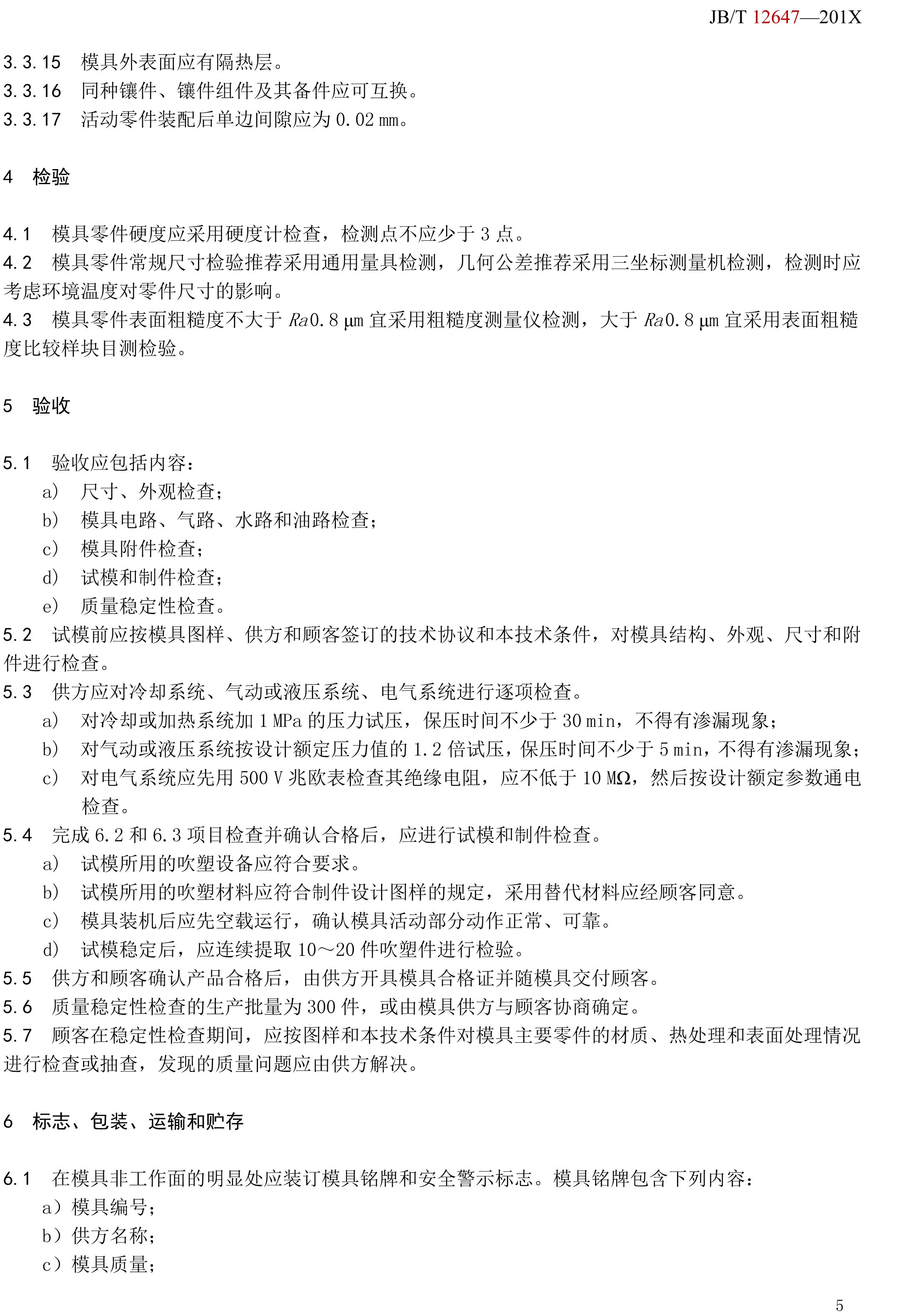 國家標準和行業(yè)標準包涵以十大類(lèi)模具為模具標準主體對象,含概了術(shù)語(yǔ)、技術(shù)條件、模架、模具零件、結構形式、實(shí)驗方法、技術(shù)驗收條件、安全等其它條件等等以及模具質(zhì)量相關(guān)基礎標準。“十二五”期間符合模具技術(shù)與市場(chǎng)的發(fā)展,具有創(chuàng )新性的產(chǎn)業(yè)模具標準也在行業(yè)標準中占有重要地位。