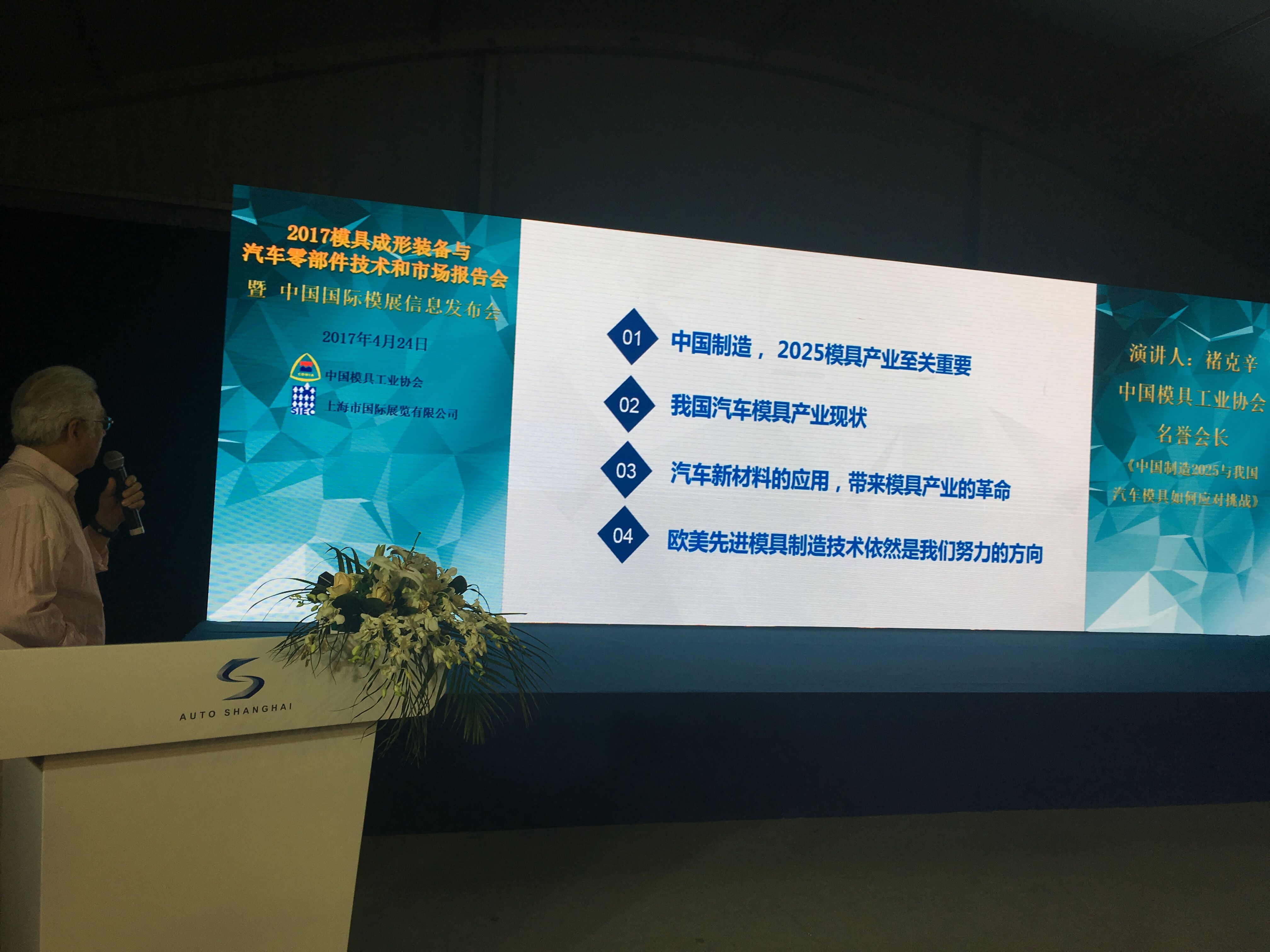 2017年4月24日,由中國模具工業(yè)協(xié)會(huì )和上海市國際展覽有限公司主辦的2017模具成形裝備與汽車(chē)零部件技術(shù)和市場(chǎng)報告會(huì )在上海國家會(huì )展中心順利召開(kāi)。