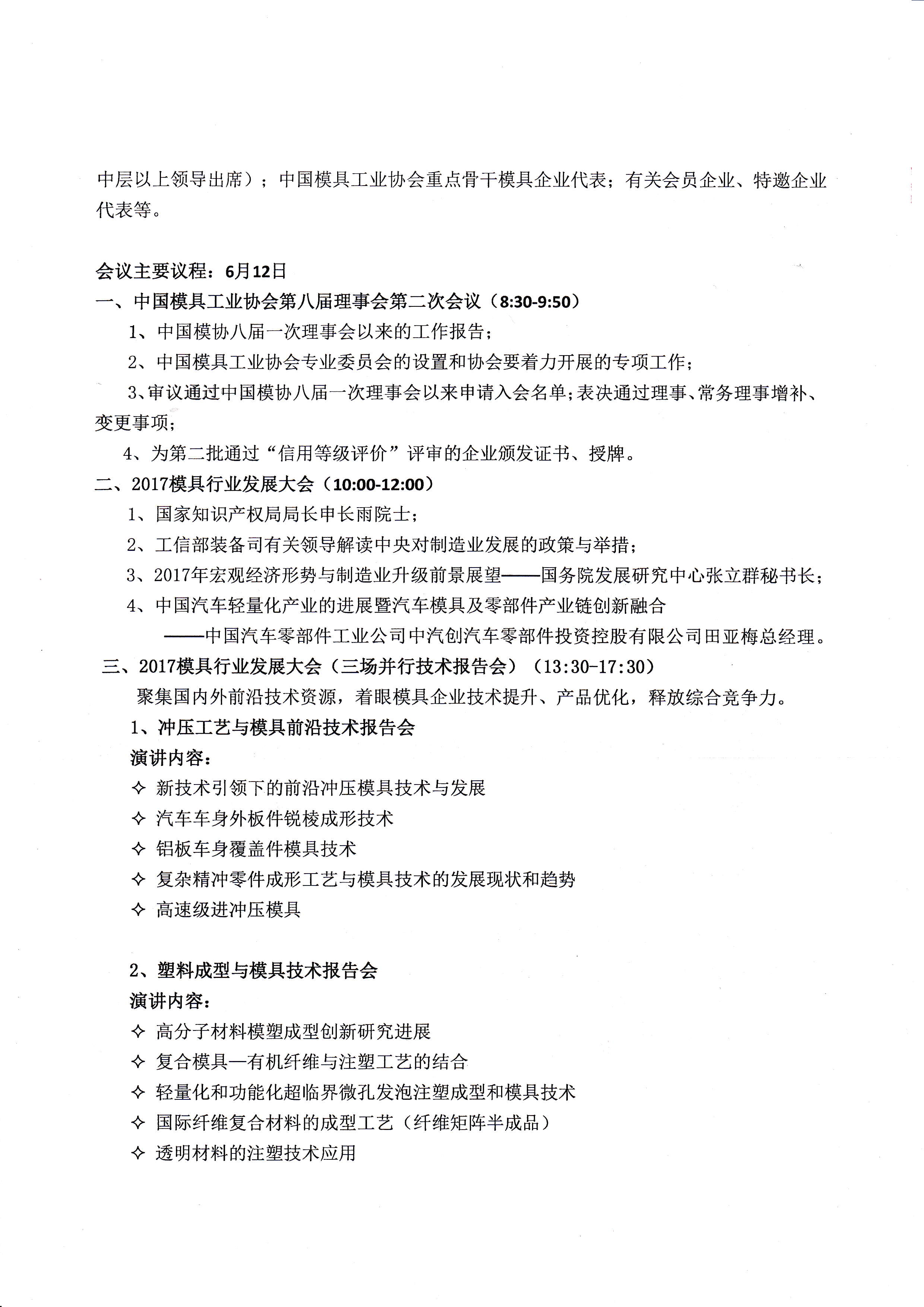 中國模具工業(yè)協(xié)會(huì )八屆理事會(huì )第二次會(huì )議暨2017模具行業(yè)發(fā)展大會(huì )會(huì )議通知