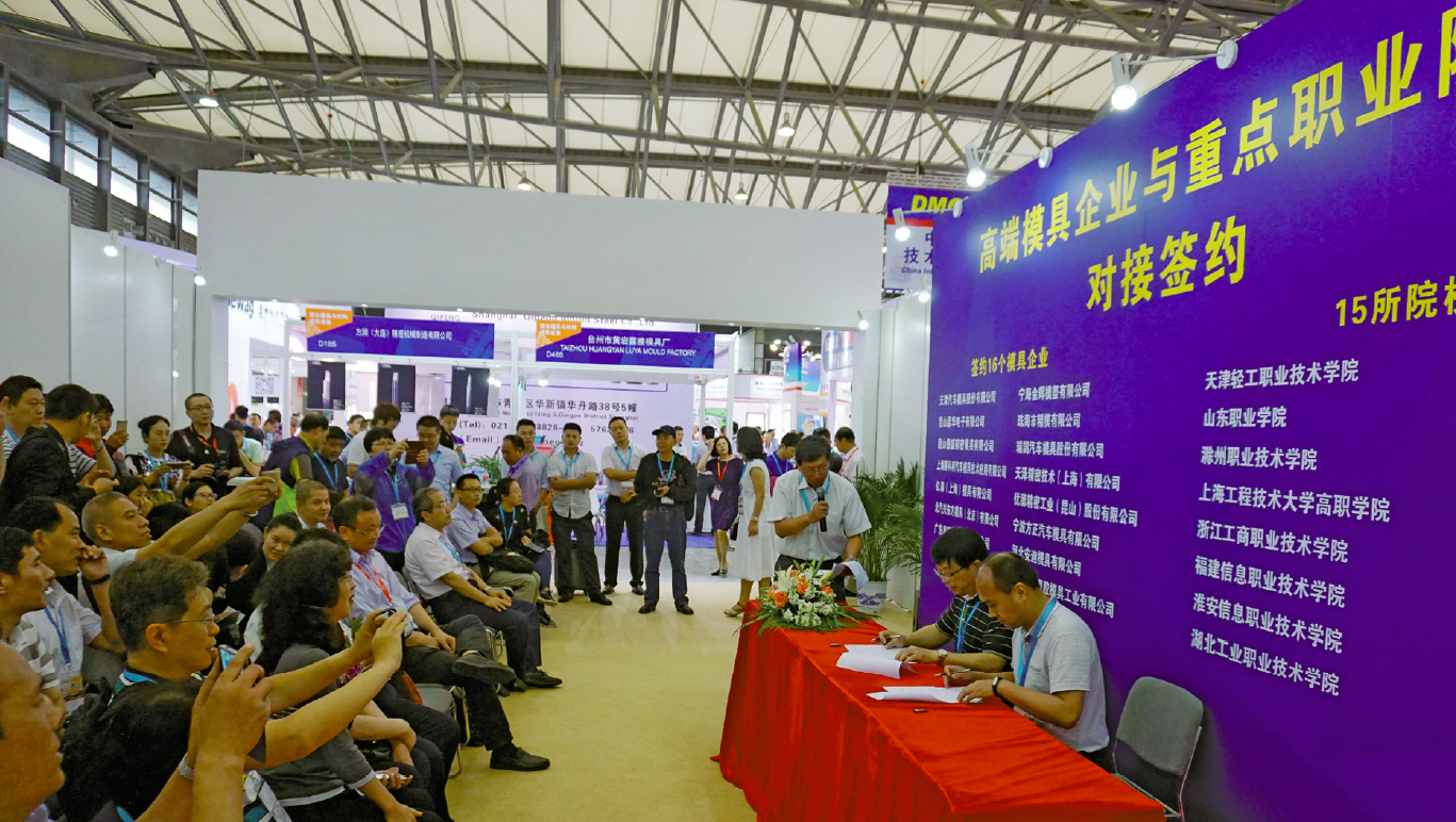 在歡快的氛圍中,滁州職業(yè)技術(shù)學(xué)院汽車(chē)工程系主任張信群主持校企業(yè)雙方的簽約儀式。中國機械工業(yè)聯(lián)合會(huì )執行副會(huì )長(cháng)于清笈和中國內燃機工業(yè)協(xié)會(huì )常務(wù)副理事長(cháng)兼秘書(shū)長(cháng)邢敏、中國模具工業(yè)協(xié)會(huì )副會(huì )長(cháng)張嘉敏、秘書(shū)長(cháng)秦珂、顧問(wèn)鮑明飛和上海市模具行業(yè)協(xié)會(huì )劉德普秘書(shū)長(cháng),以及媒體、展商和專(zhuān)業(yè)觀(guān)眾100余人共同見(jiàn)證了這一重要時(shí)刻。大家也對這一創(chuàng )新舉措寄以期待,也相信這種戰略合作會(huì )為我國模具專(zhuān)業(yè)人才的培養、儲備和提升寫(xiě)下濃重的一筆!