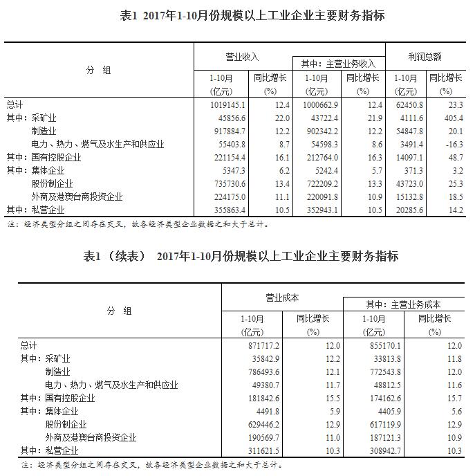 1-10月份,全國規模以上工業(yè)企業(yè)實(shí)現利潤總額62450.8億元,同比增長(cháng)23.3%,增速比1-9月份加快0.5個(gè)百分點(diǎn)。