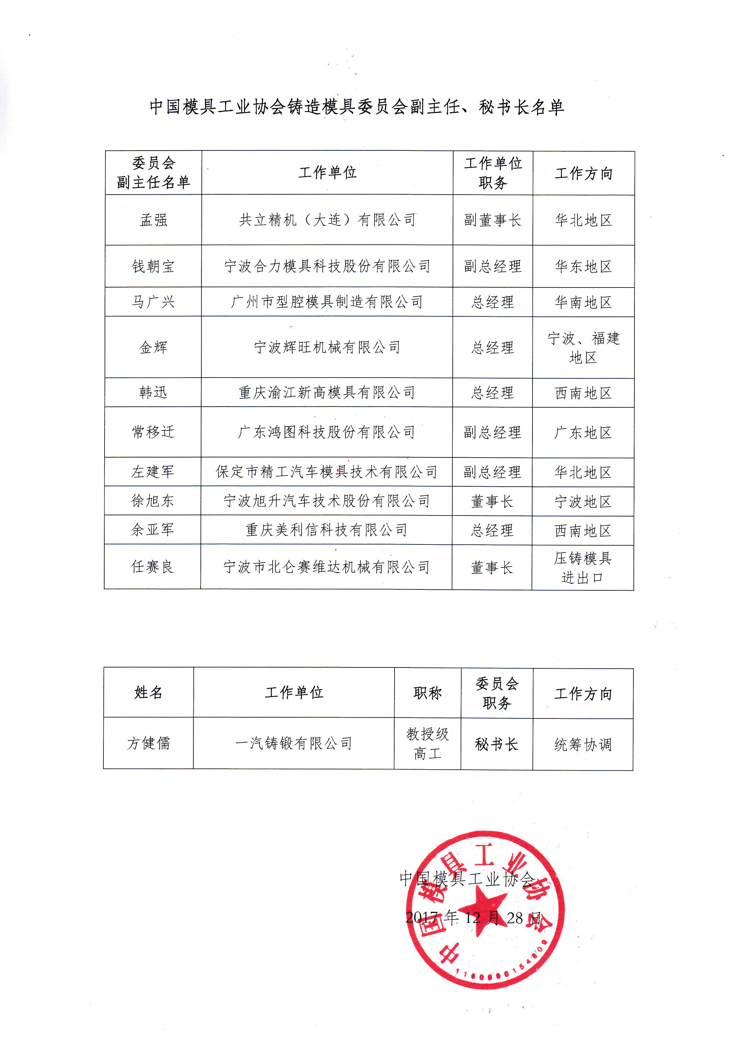 >> 壓鑄/鑄造模具專(zhuān)業(yè)委員會(huì ) >>