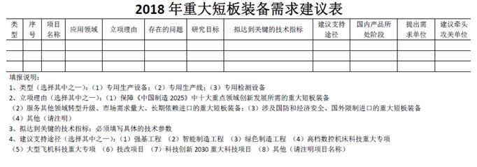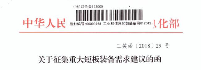 2018年1月18日工信部裝備司下發(fā)《關(guān)于征集重大短板裝備需求建議的函》,
