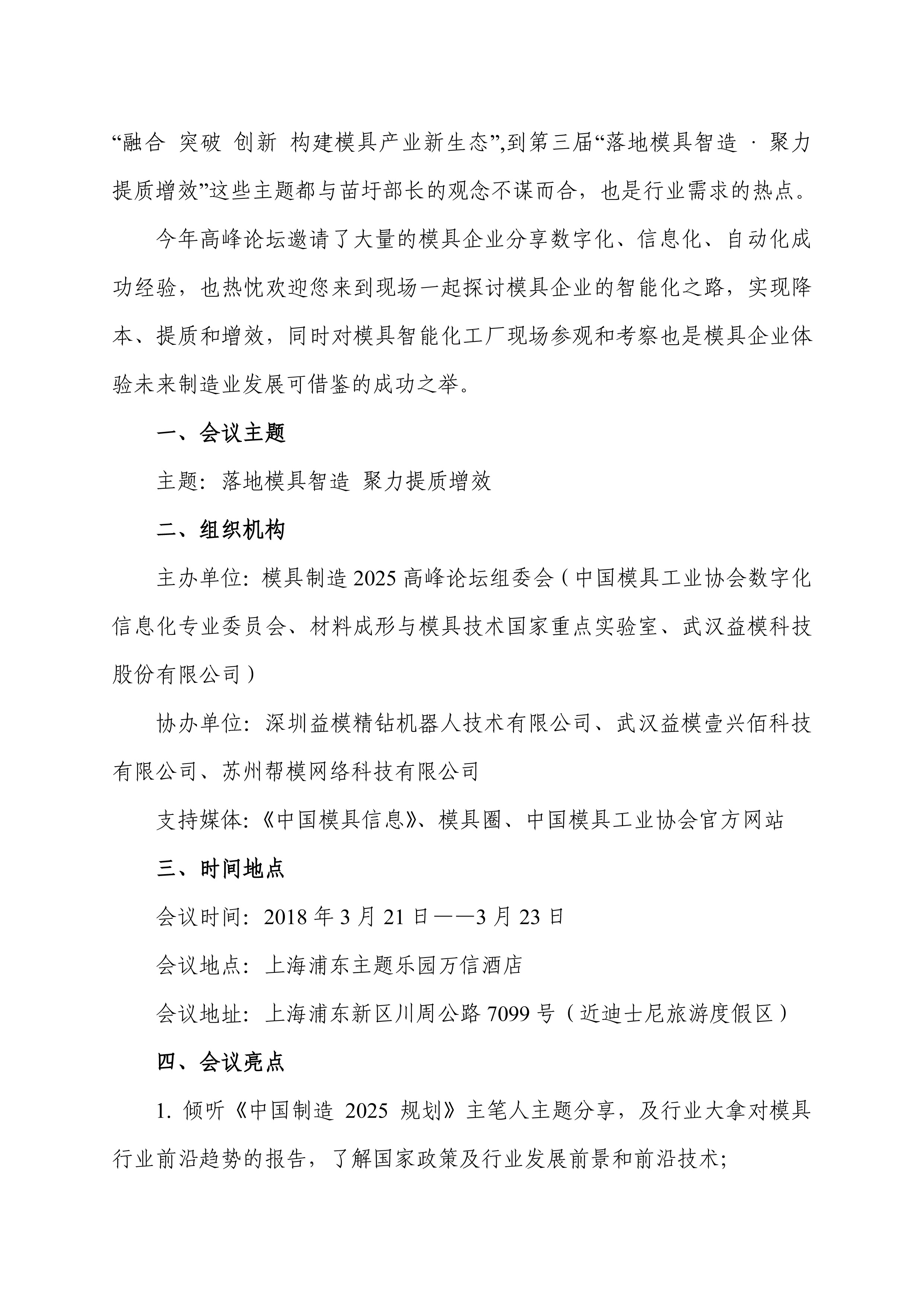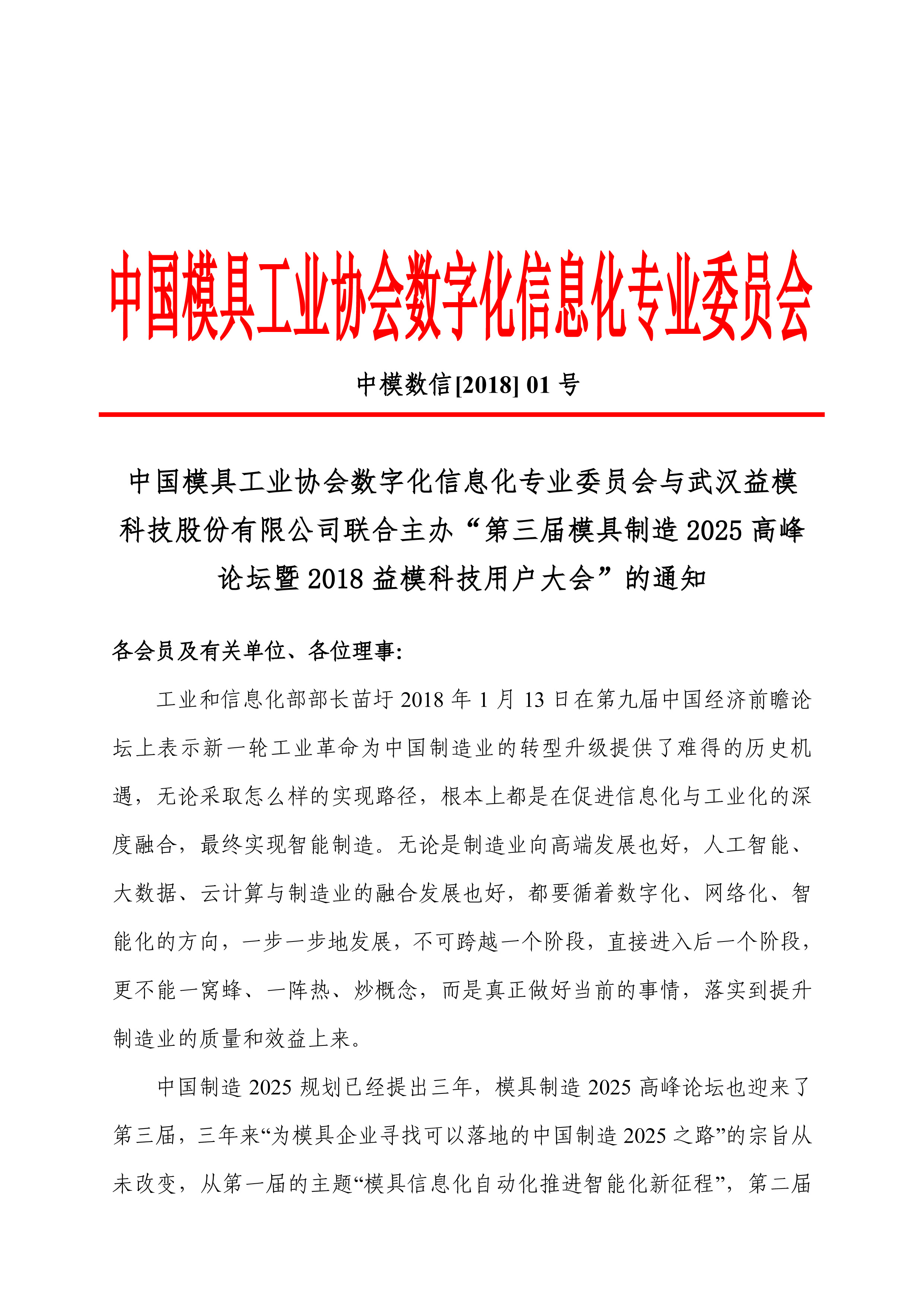 中國模具工業(yè)協(xié)會(huì )數字化信息化專(zhuān)業(yè)委員會(huì )與武漢益??萍脊煞萦邢薰韭?lián)合主辦“第三屆模具制造2025高峰論壇暨2018益??萍加脩?hù)大會(huì )”的通知