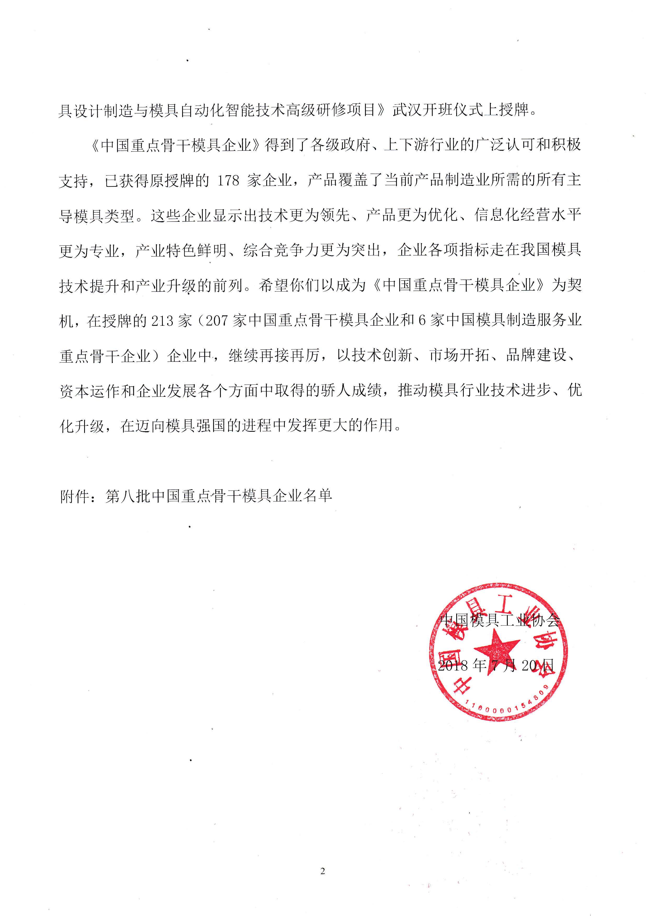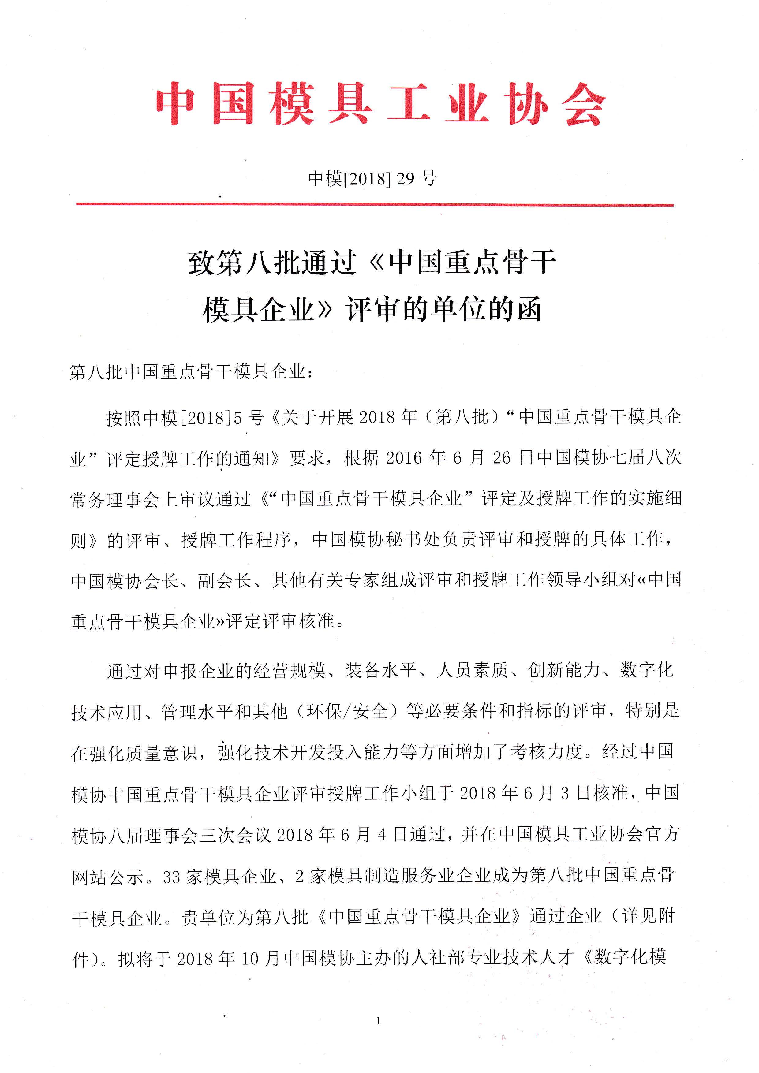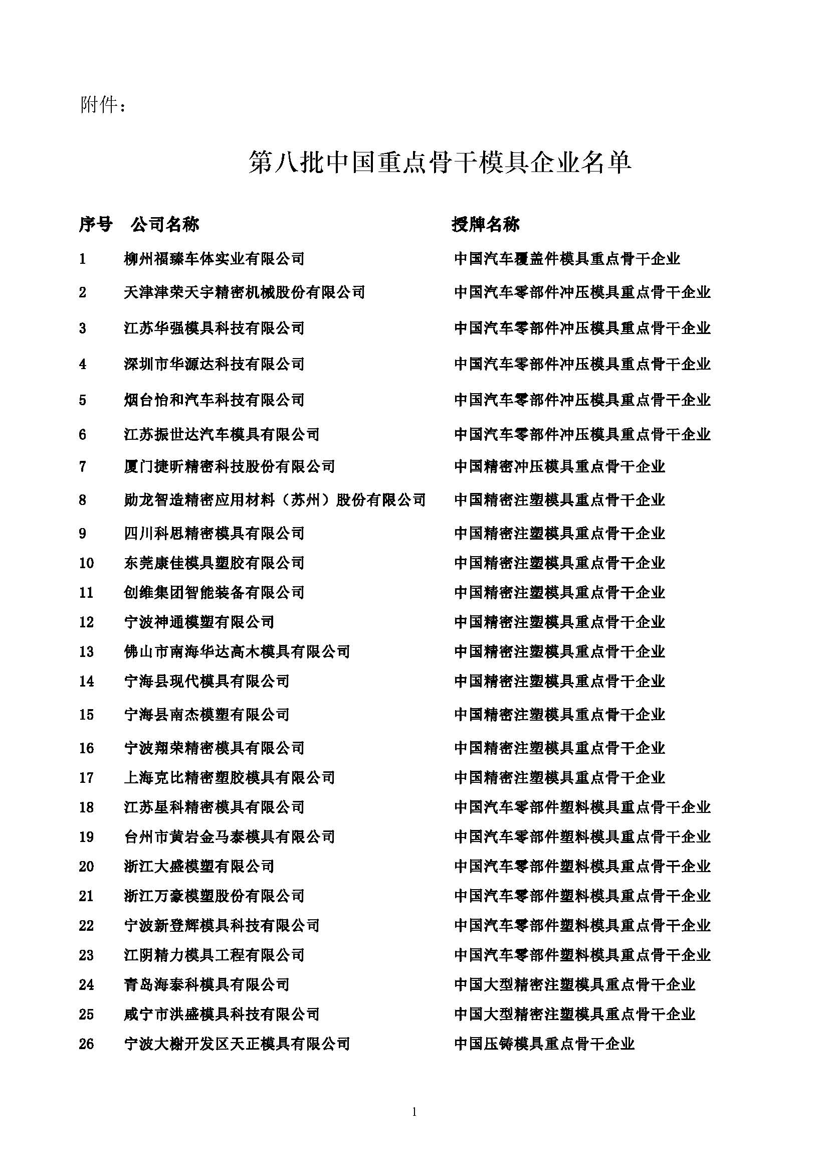 第八批重點(diǎn)骨干模具企業(yè)通知函