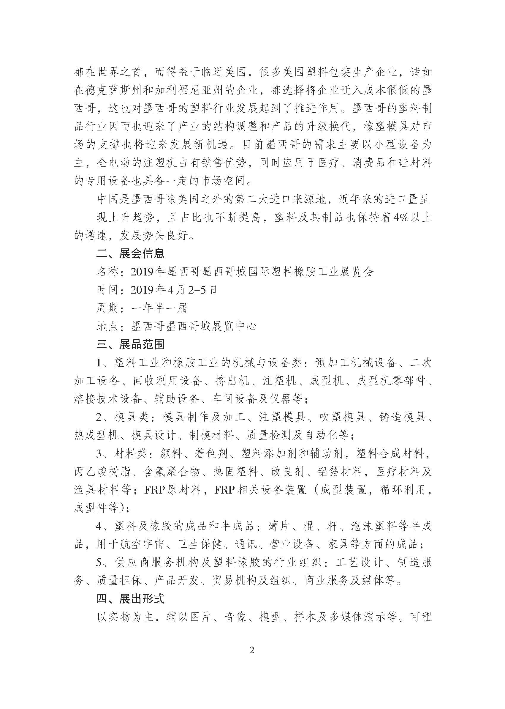 關(guān)于邀請參加2019 年墨西哥墨西哥城國際塑料橡膠工業(yè)展覽會(huì )的通知