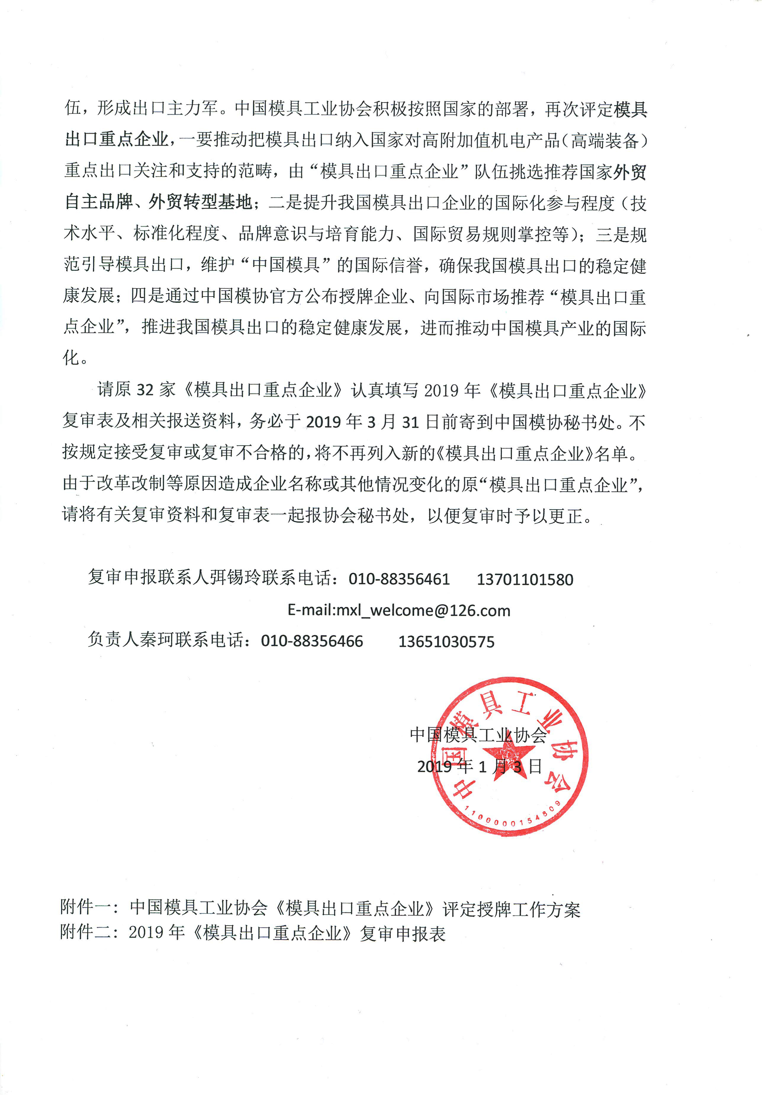 關(guān)于開(kāi)展32家《模具出口重點(diǎn)企業(yè)》復審工作的通知