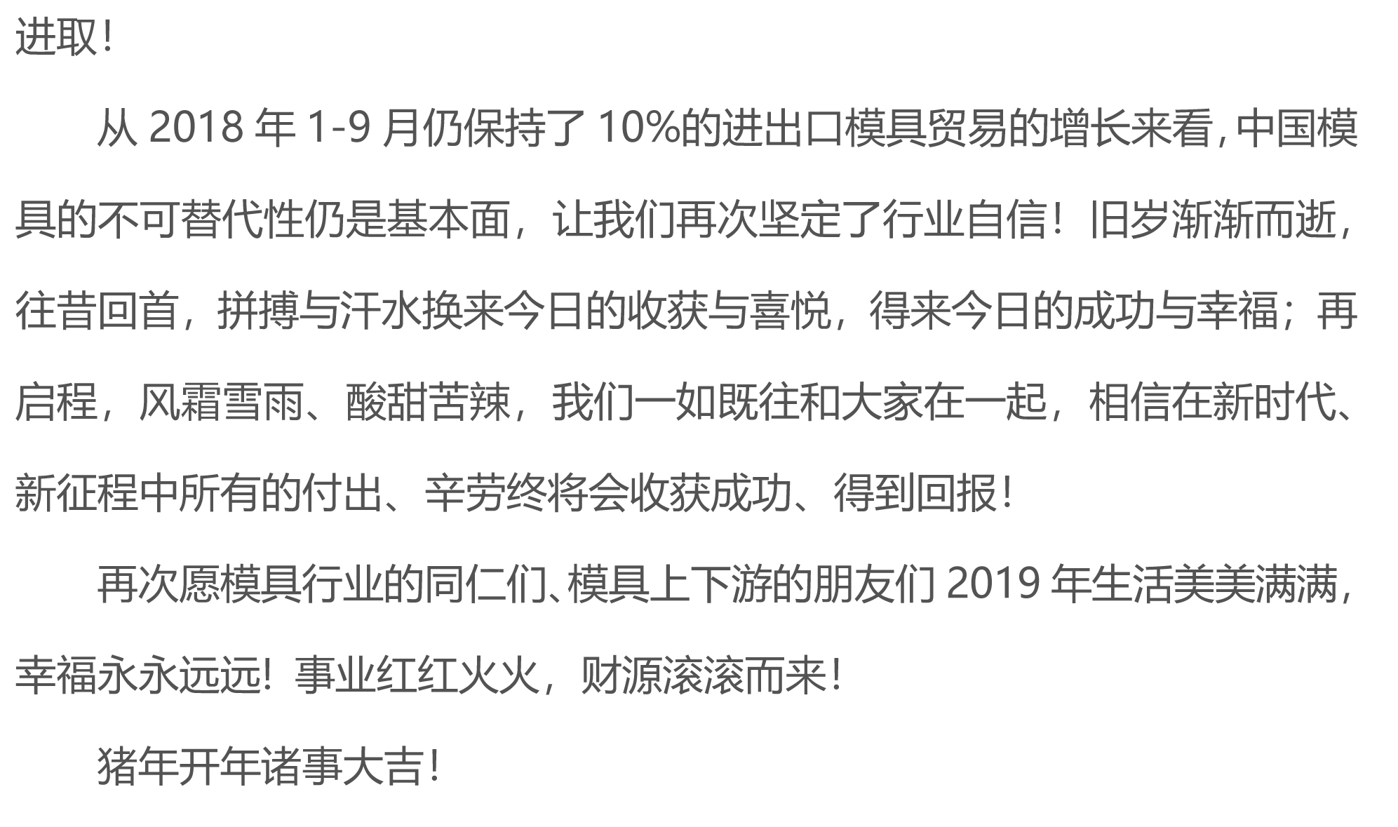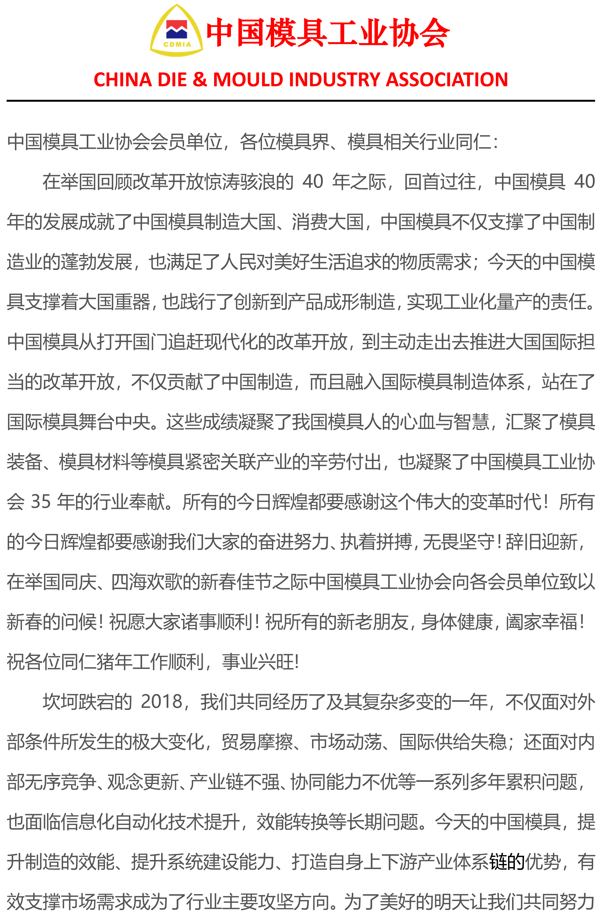 中國模具工業(yè)協(xié)會(huì )給大家拜年啦!
