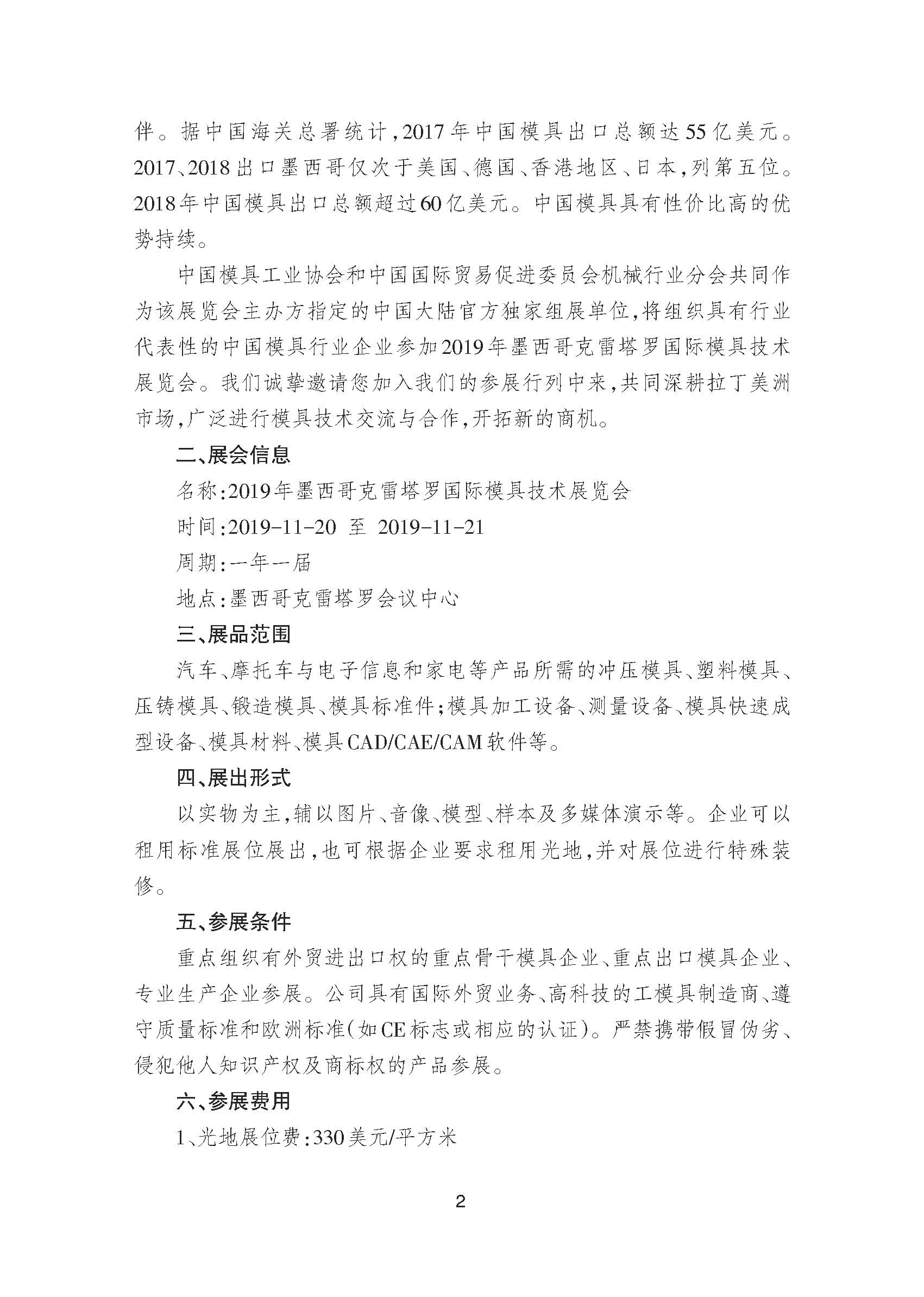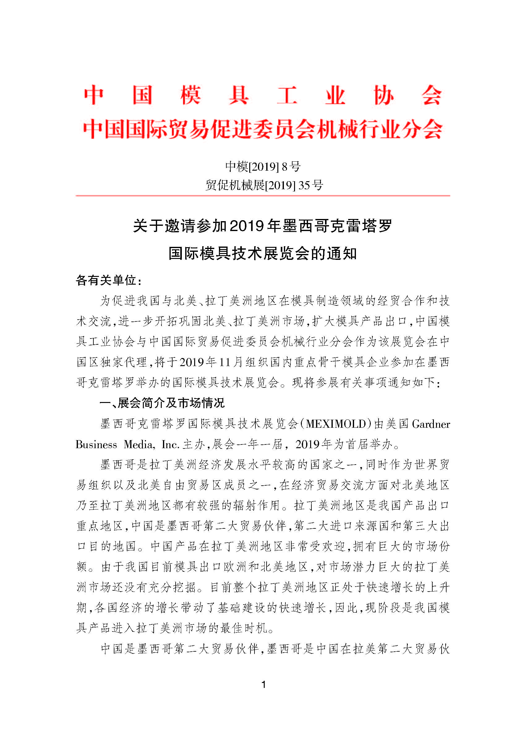 關(guān)于邀請參加2019年墨西哥克雷塔羅國際模具技術(shù)展覽會(huì )的通知