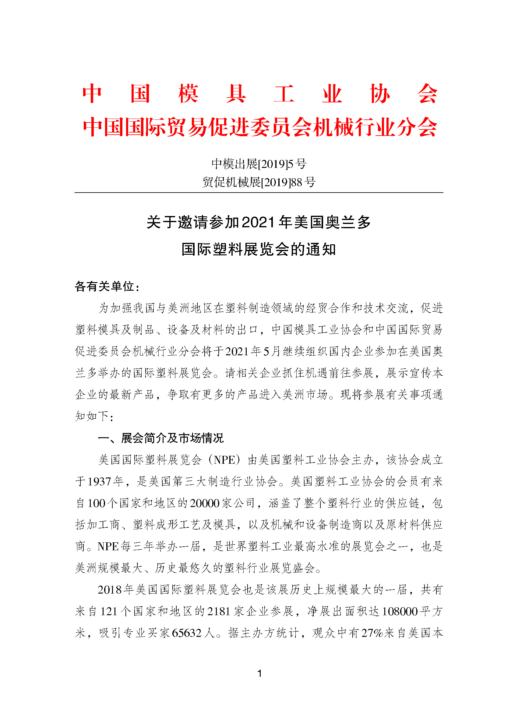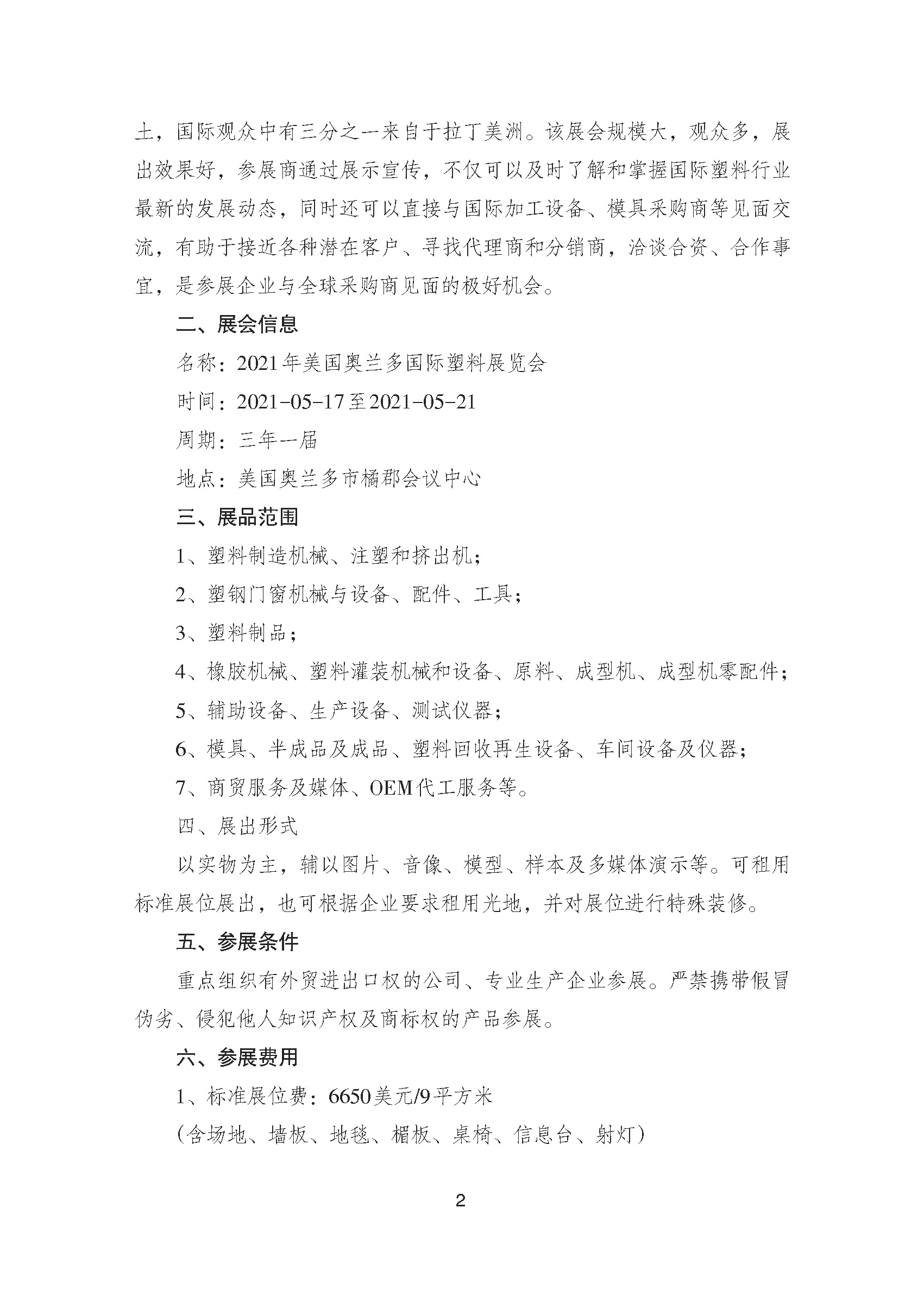 關(guān)于邀請參加2021年美國奧蘭多國際塑料展覽會(huì )的通知