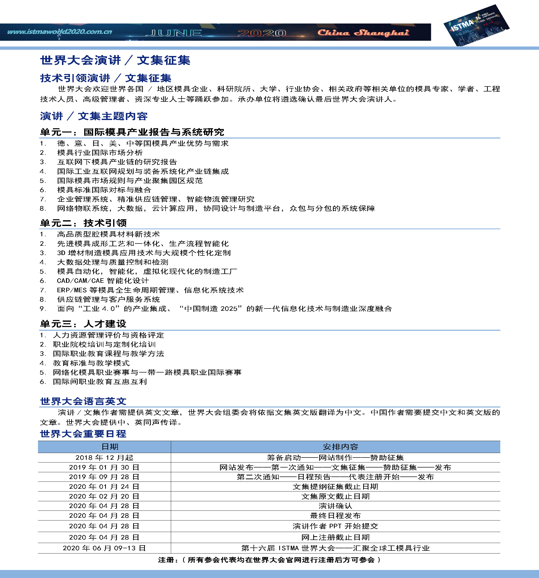 第十六屆ISTMA世界大會(huì )——匯聚全球工模具行業(yè) 文集、注冊邀請