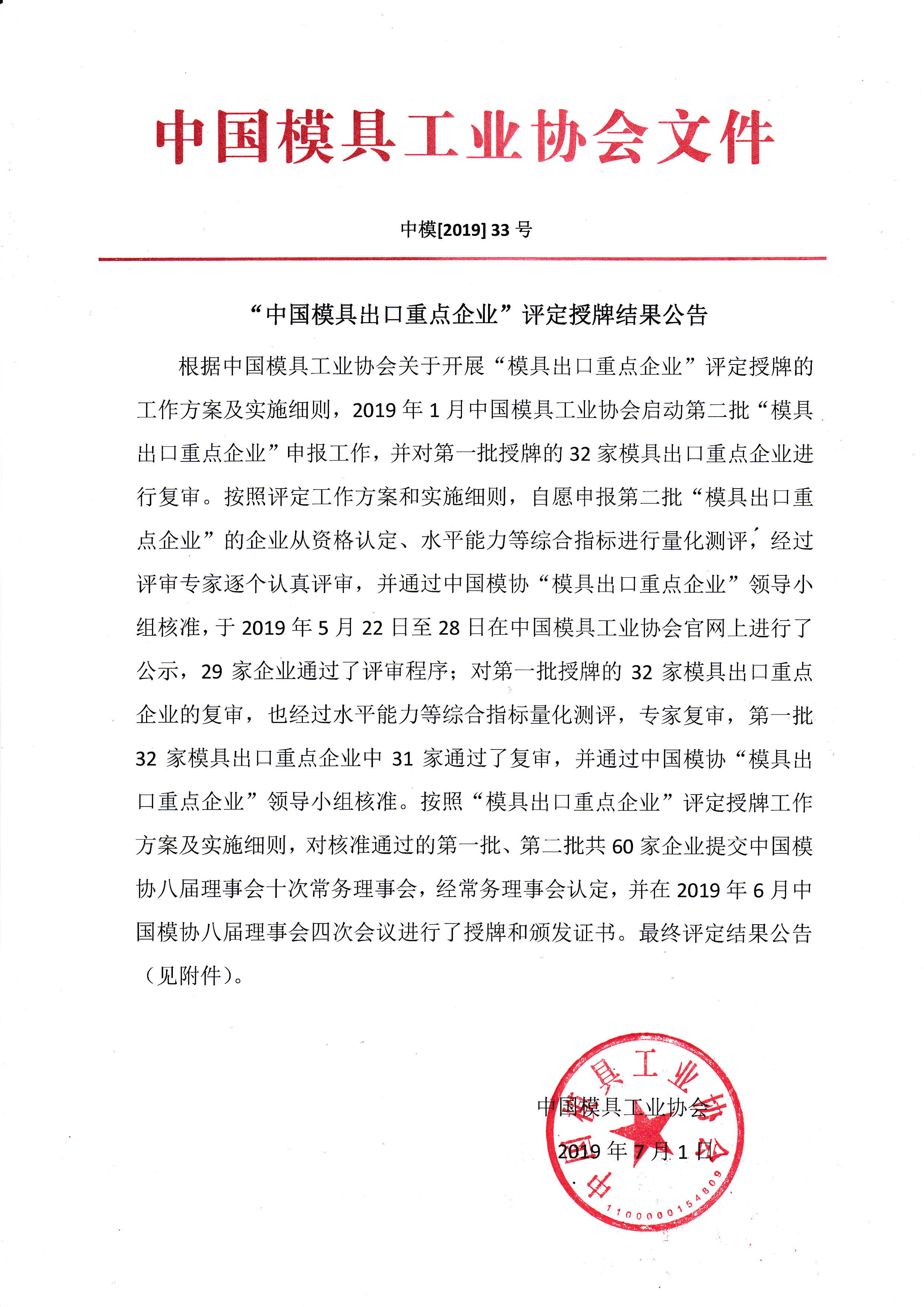 “中國模具出口重點(diǎn)企業(yè)”評定授牌結果公告 |