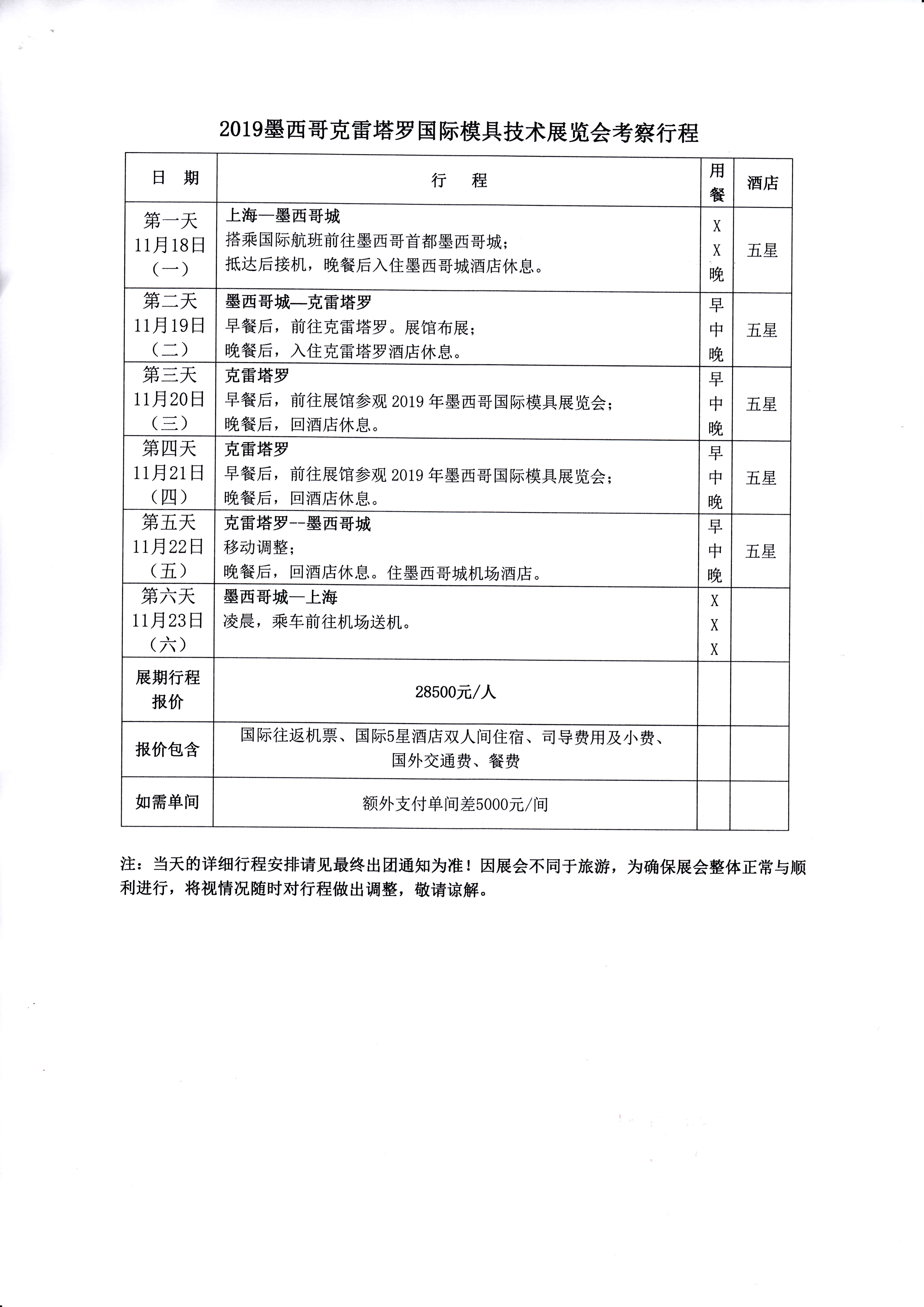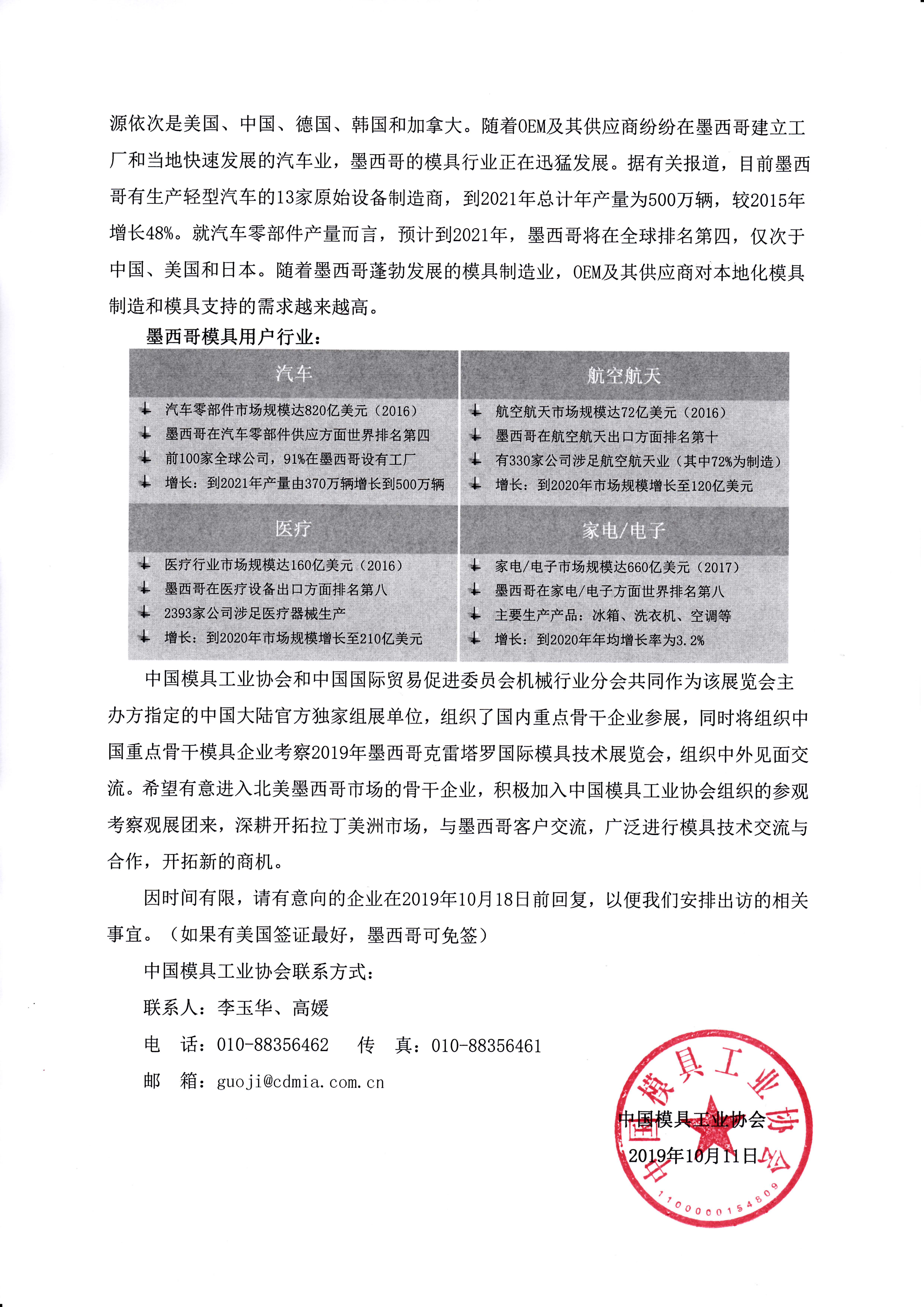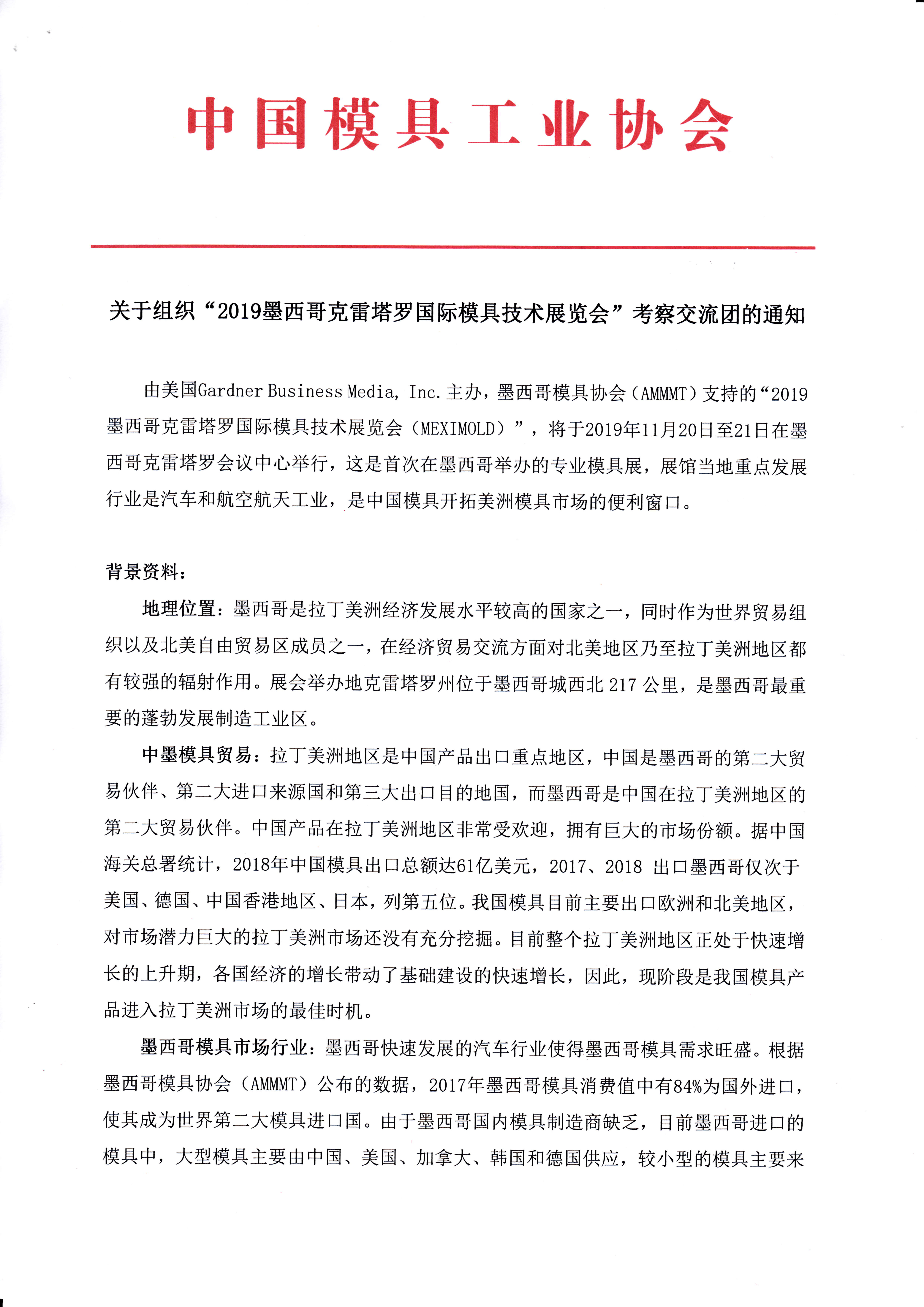 關(guān)于組織“2019墨西哥克雷塔羅國際模具技術(shù)展覽會(huì )”考察交流團的通知