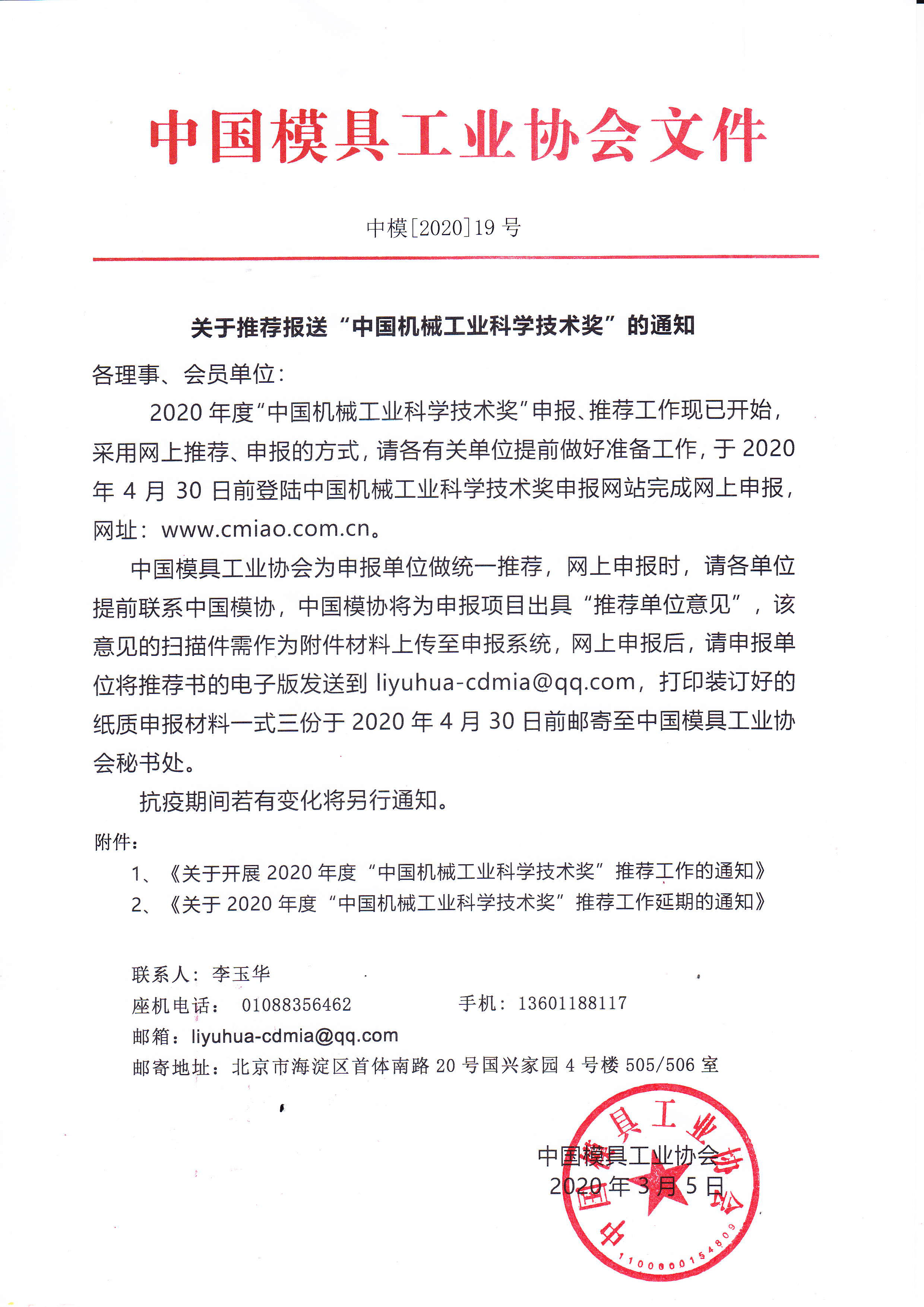 1.《關(guān)于開(kāi)展2020年度“中國機械工業(yè)科學(xué)技術(shù)獎”推薦工作的通知.pdf