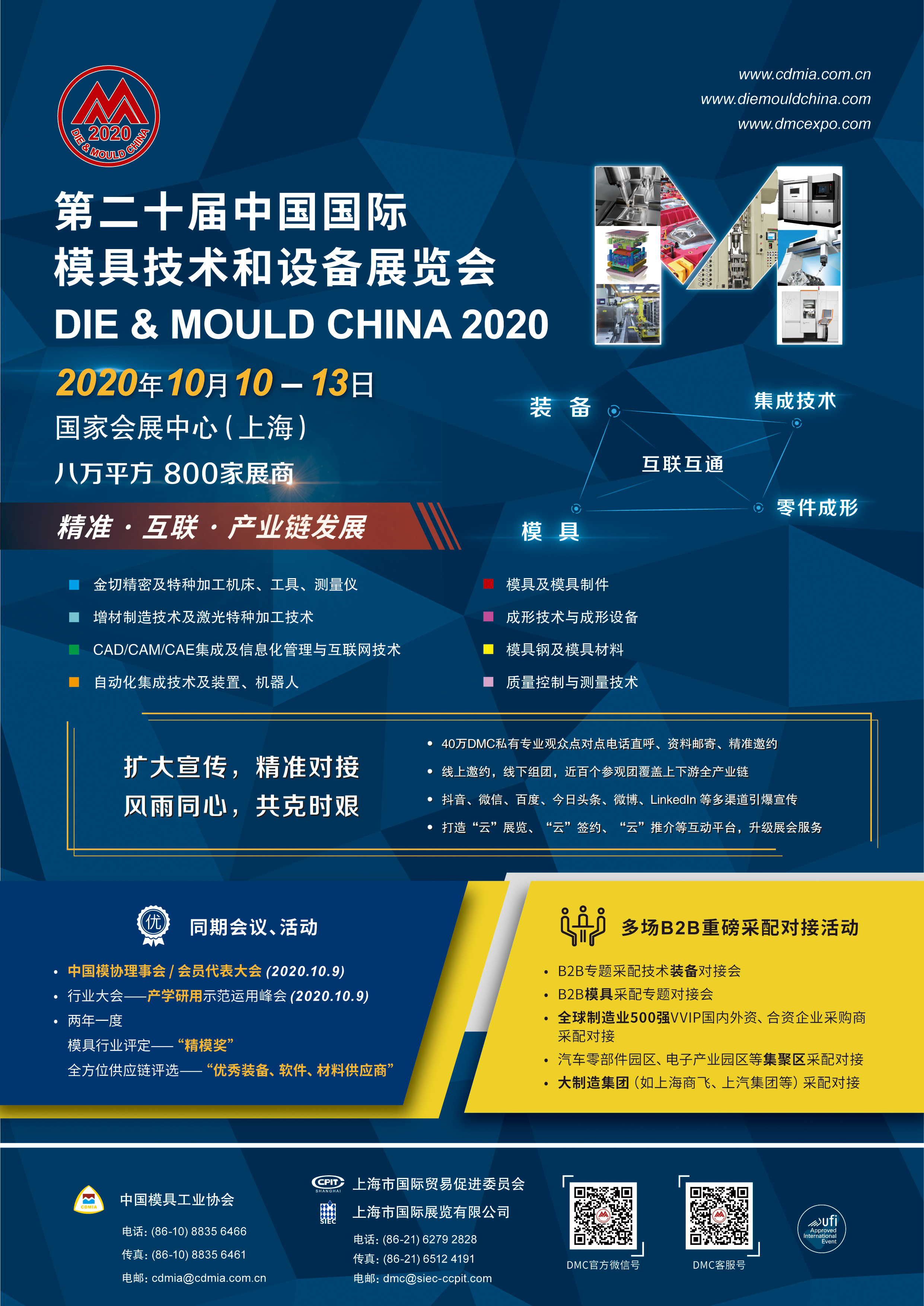 關(guān)于組織參加2020中國模具行業(yè)大會(huì )及“2020中國國際模具技術(shù)和設備展覽會(huì )產(chǎn)學(xué)研用示范項目展示專(zhuān)區”的通知
