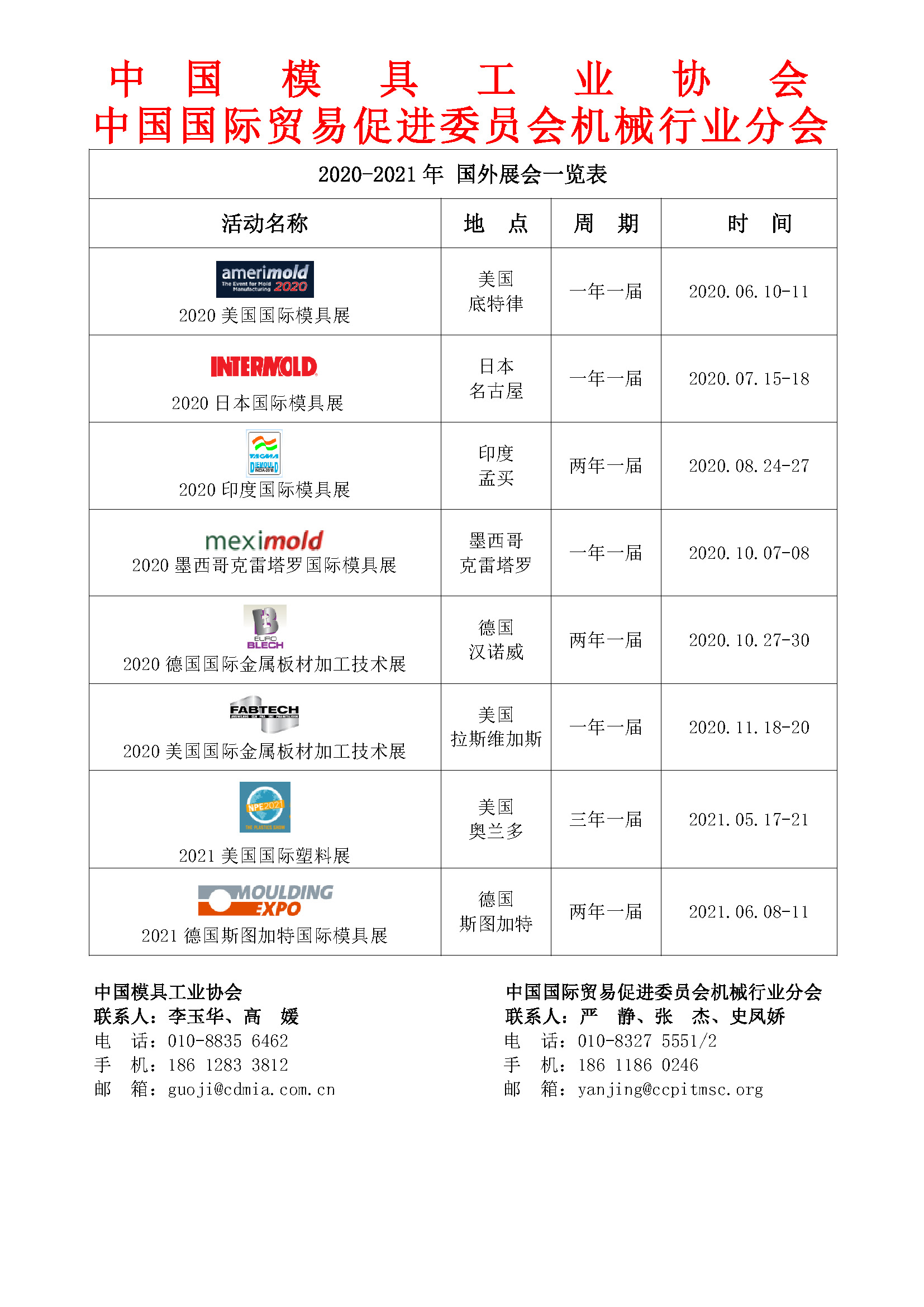 2020-2021年 國外展會(huì )一覽表