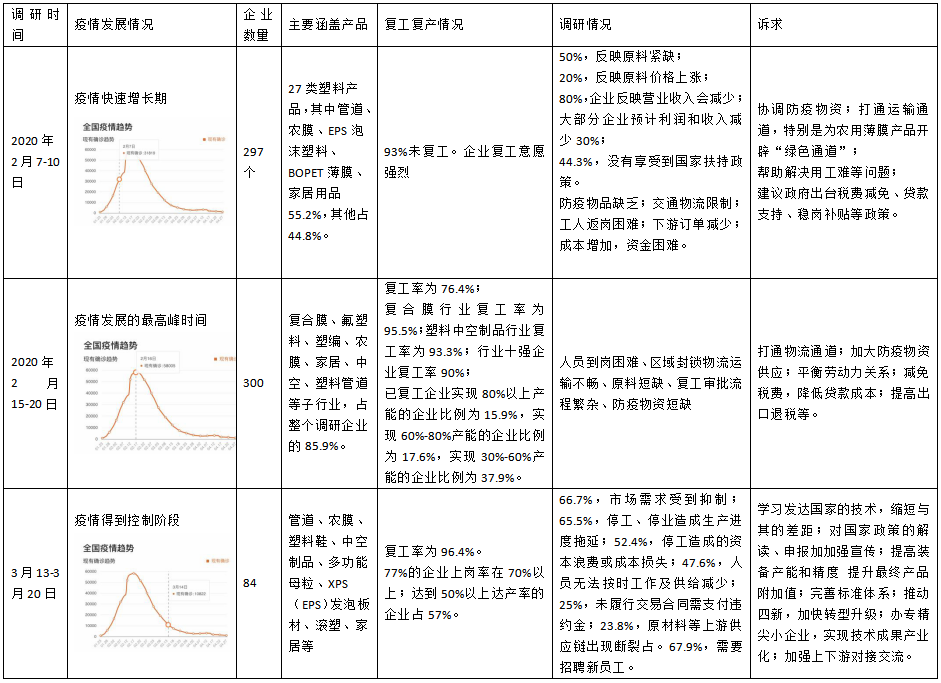 新冠肺炎疫情爆發(fā)以來(lái),中國塑協(xié)認真調研行業(yè)形勢,研究復產(chǎn)復工、保障行業(yè)運行與發(fā)展的對策建議。