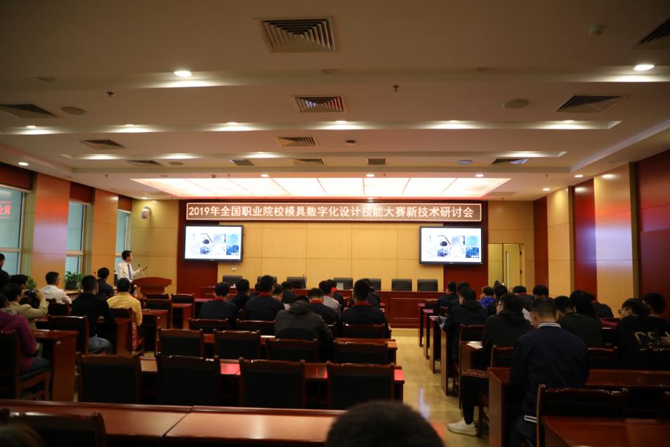 在比賽的同時(shí),各學(xué)校領(lǐng)隊及指導教師參加了2019年全國職業(yè)院校模具數字化設計技能大賽新技術(shù)研討會(huì )。在會(huì )上,GF加工方案華北區銷(xiāo)售總監白相忠以“新技術(shù),新機遇”為主題,北京精雕科技集團有限公司CAD/CAM項目負責人王帥以“‘智’造下的CN程序”為主題分別向參會(huì )人員做了講座。