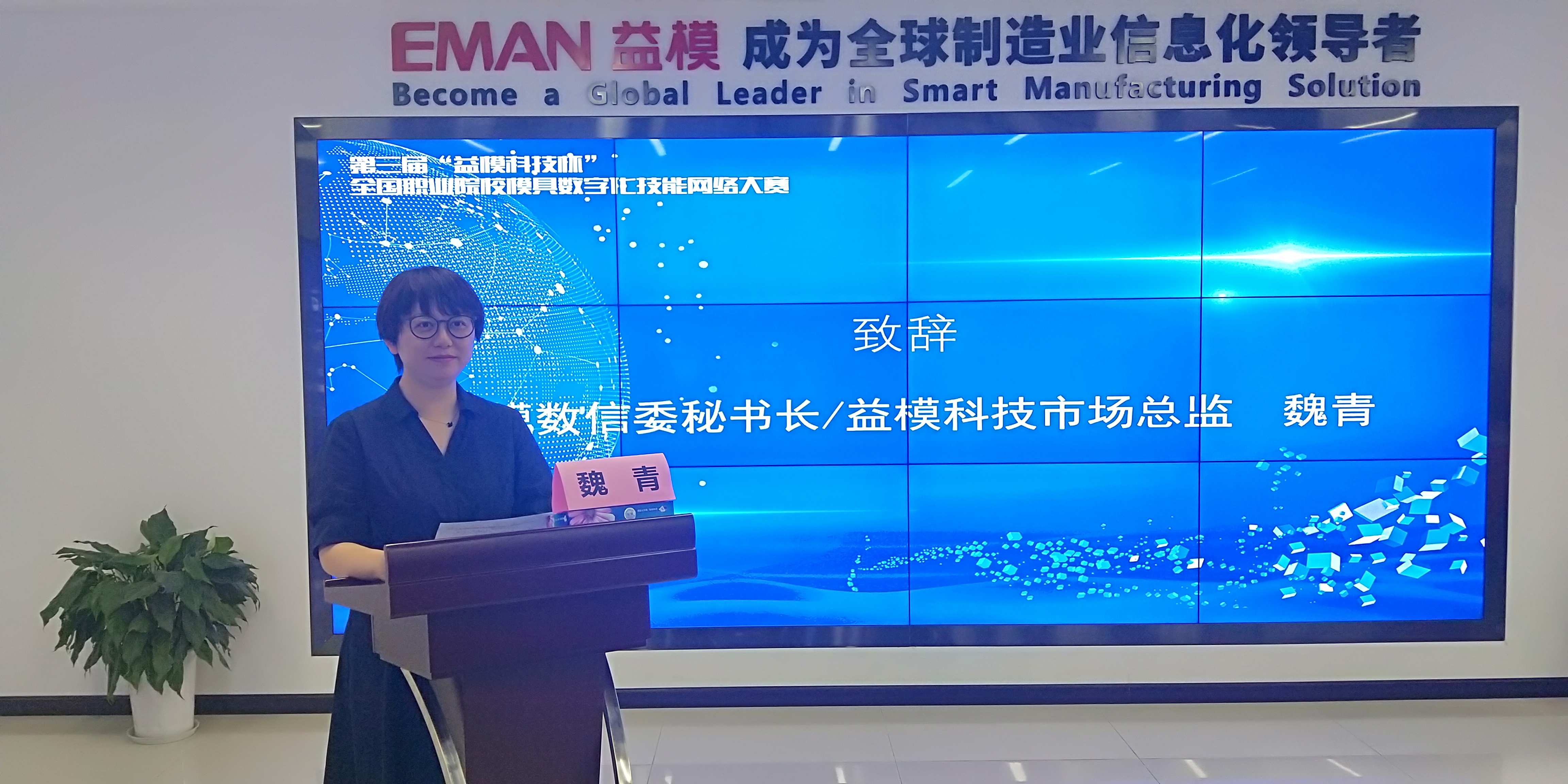 大賽技術(shù)支持單位益??萍际袌?chǎng)總監魏青女士致辭,歡迎各參賽院校參加比賽,并預祝比賽圓滿(mǎn)成功。