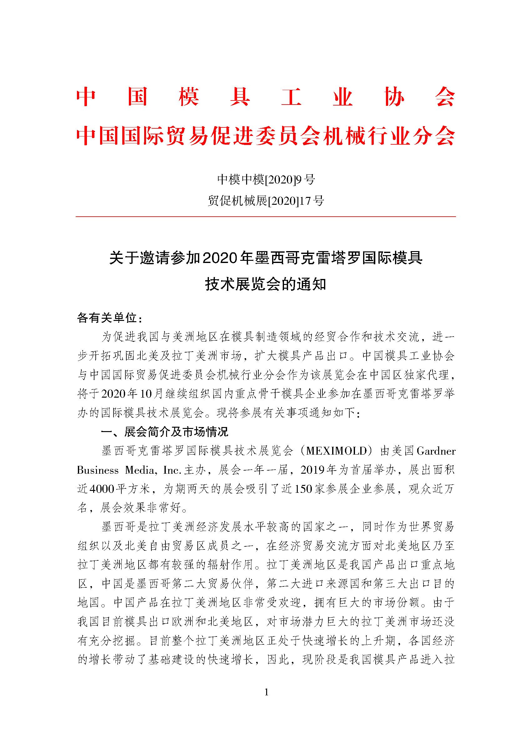 關(guān)于邀請參加2020年墨西哥克雷塔羅國際模具技術(shù)展覽會(huì )的通知