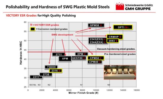 德國葛利茲鋼廠(chǎng)根據中國市場(chǎng)需要打造的明星產(chǎn)品738HH和XPM,改良自傳統1.2738鋼種,相比1.2738截面硬度更加均勻,均有更加穩定的拋光及曬紋性能,目前已成為模具鋼行業(yè)的明星產(chǎn)品,汽車(chē)及家電行業(yè)大量使用。