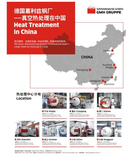德國葛利茲鋼廠(chǎng)在中國模具產(chǎn)業(yè)集中的華南、華中及華東地區均配套有真空熱處理服務(wù),以確保中國客戶(hù)購買(mǎi)到葛利茲產(chǎn)品的同時(shí)可以享有葛利茲熱處理的品質(zhì)保證。