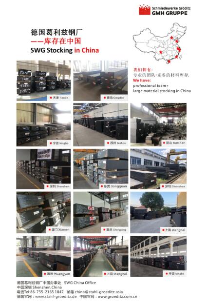 德國葛利茲鋼廠(chǎng)擁有全球最大的電渣重熔生產(chǎn)線(xiàn)之一,可生產(chǎn)重量達84噸的鋼錠。葛利茲鋼材在中國的長(cháng)期庫存為20000噸,精密鍛造鋼材尺寸可達2000x1000xLmm,可滿(mǎn)足塑膠、壓鑄不同模具行業(yè)的需求。