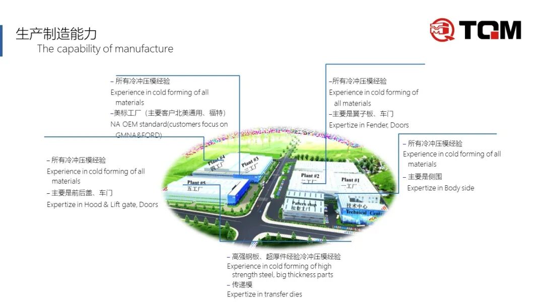 公司總部設在天津市濱海新區,業(yè)務(wù)涵蓋冷沖壓模具、熱成型模具、檢具、裝焊夾具、汽車(chē)零部件、航空零部件、新能源、軍工、IT等多領(lǐng)域,集團所屬公司遍及全國7個(gè)省市,并在北美設有分公司,客戶(hù)遍及全球20多個(gè)國家。