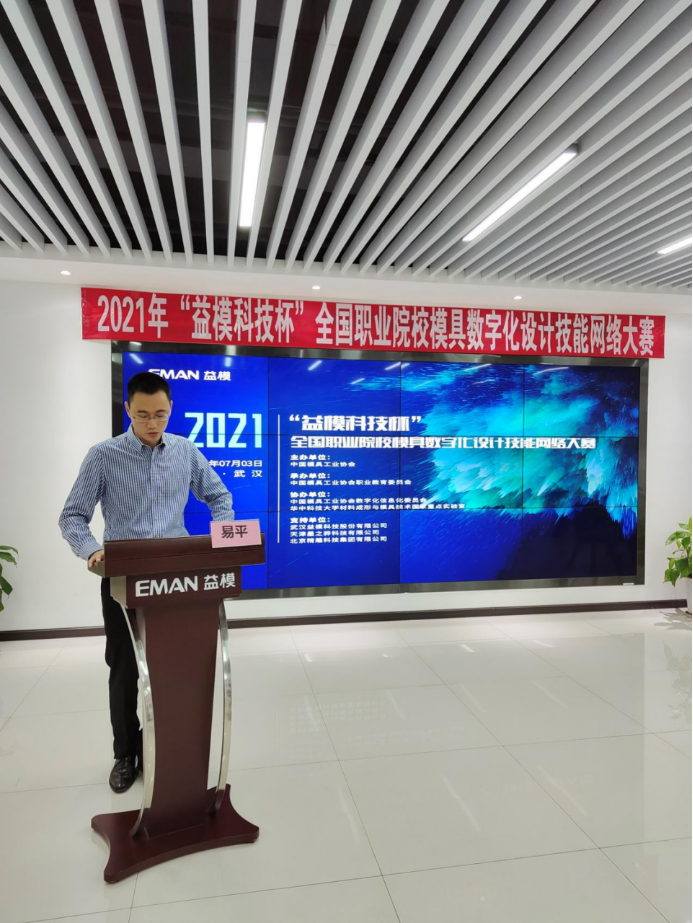 中國模具工業(yè)協(xié)會(huì )數字信息化委員會(huì )主任\武漢益??萍脊煞萦邢薰径麻L(cháng)易平先生致辭。易董事長(cháng)代表武漢益??萍脊煞萦邢薰救w員工對各位領(lǐng)導老師同學(xué)的參加表示誠摯的歡迎。然后對益模公司做了簡(jiǎn)單的介紹,多年來(lái)益模一直秉承理論與實(shí)踐相結合的理念,將15年在企業(yè)技術(shù)制造應用中的沉淀融入到職業(yè)教育領(lǐng)域,與國內多個(gè)一流職業(yè)院校合作,打造一系列智能制造實(shí)訓室,憑借申報的拉延模具數字化設計項目,成功入選第4批1+X證書(shū)的試點(diǎn)。積極進(jìn)行教學(xué)模式探索,建立適應新形勢下的職業(yè)崗位標準,為院校教學(xué)課程設置及崗位職業(yè)能力培養提供有效依據,從而實(shí)現產(chǎn)教深度融合。