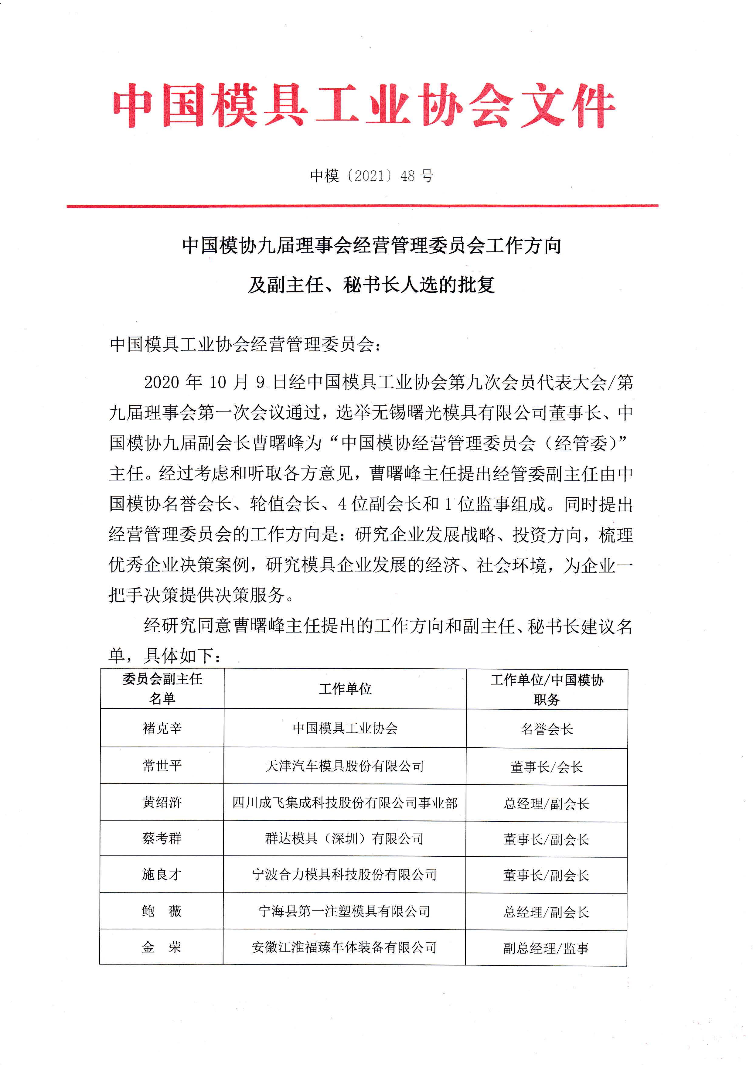 中國模協(xié)九屆理事會(huì )經(jīng)營(yíng)管理委員會(huì )工作方向及副主任、秘書(shū)長(cháng)人選的批復