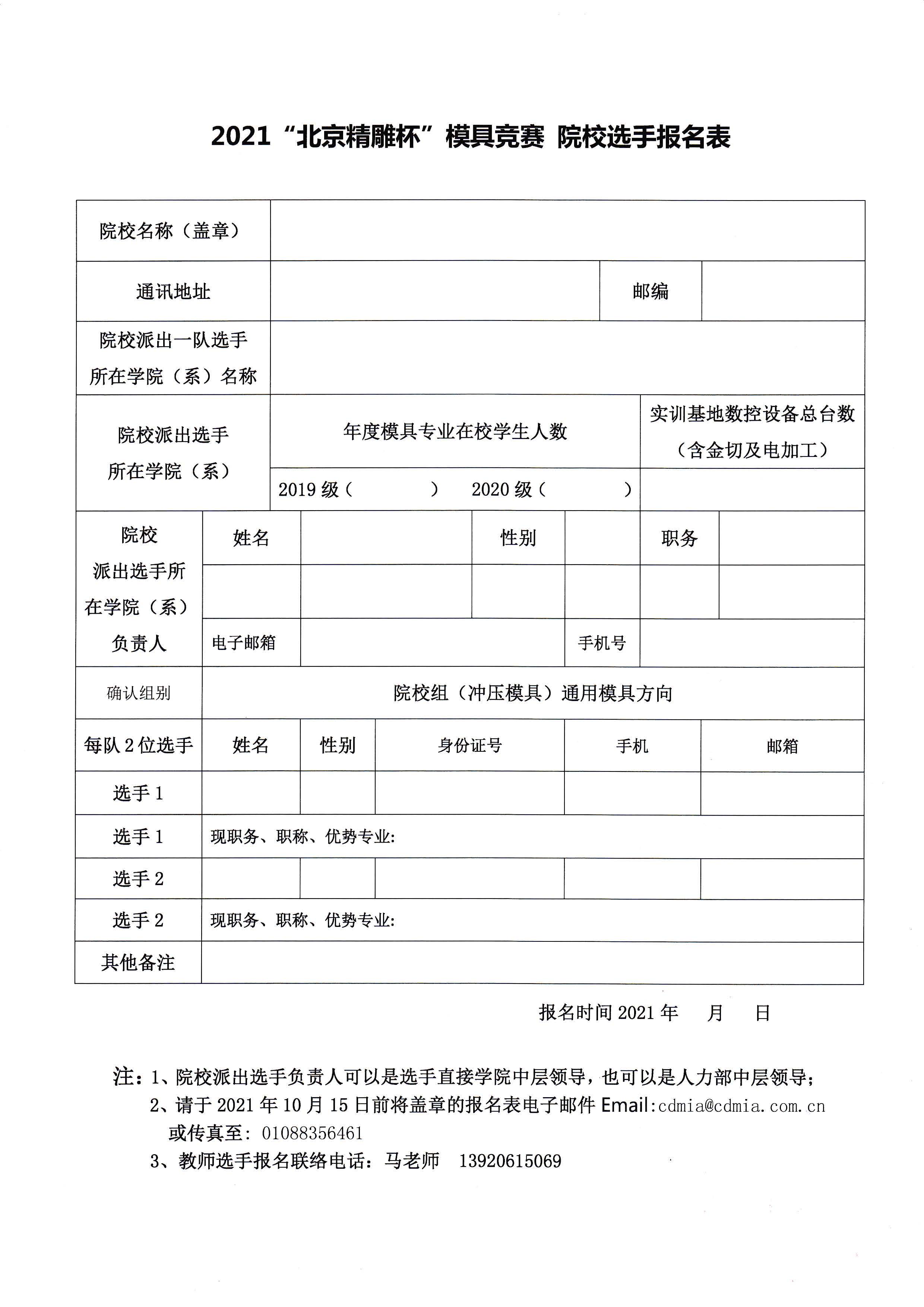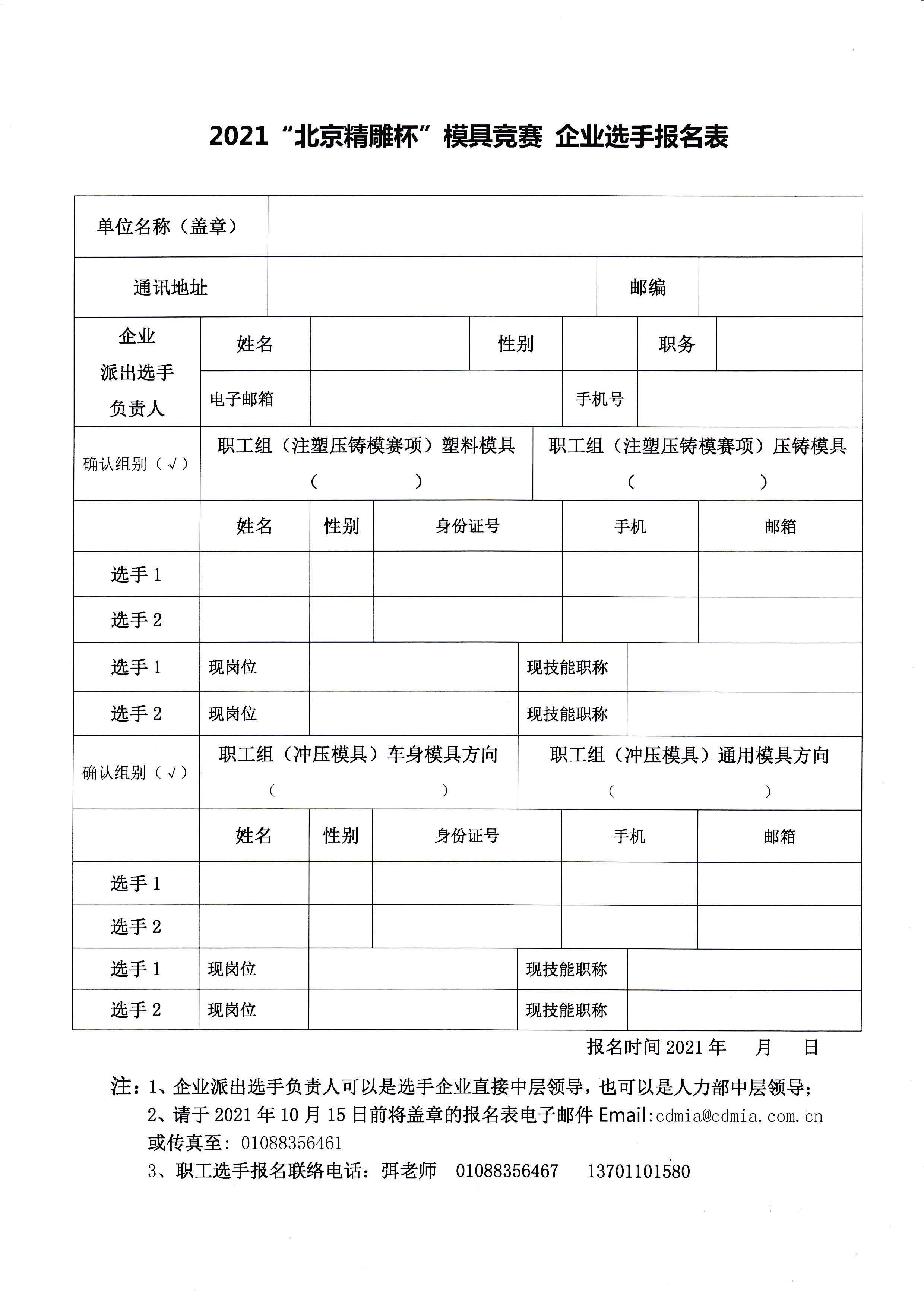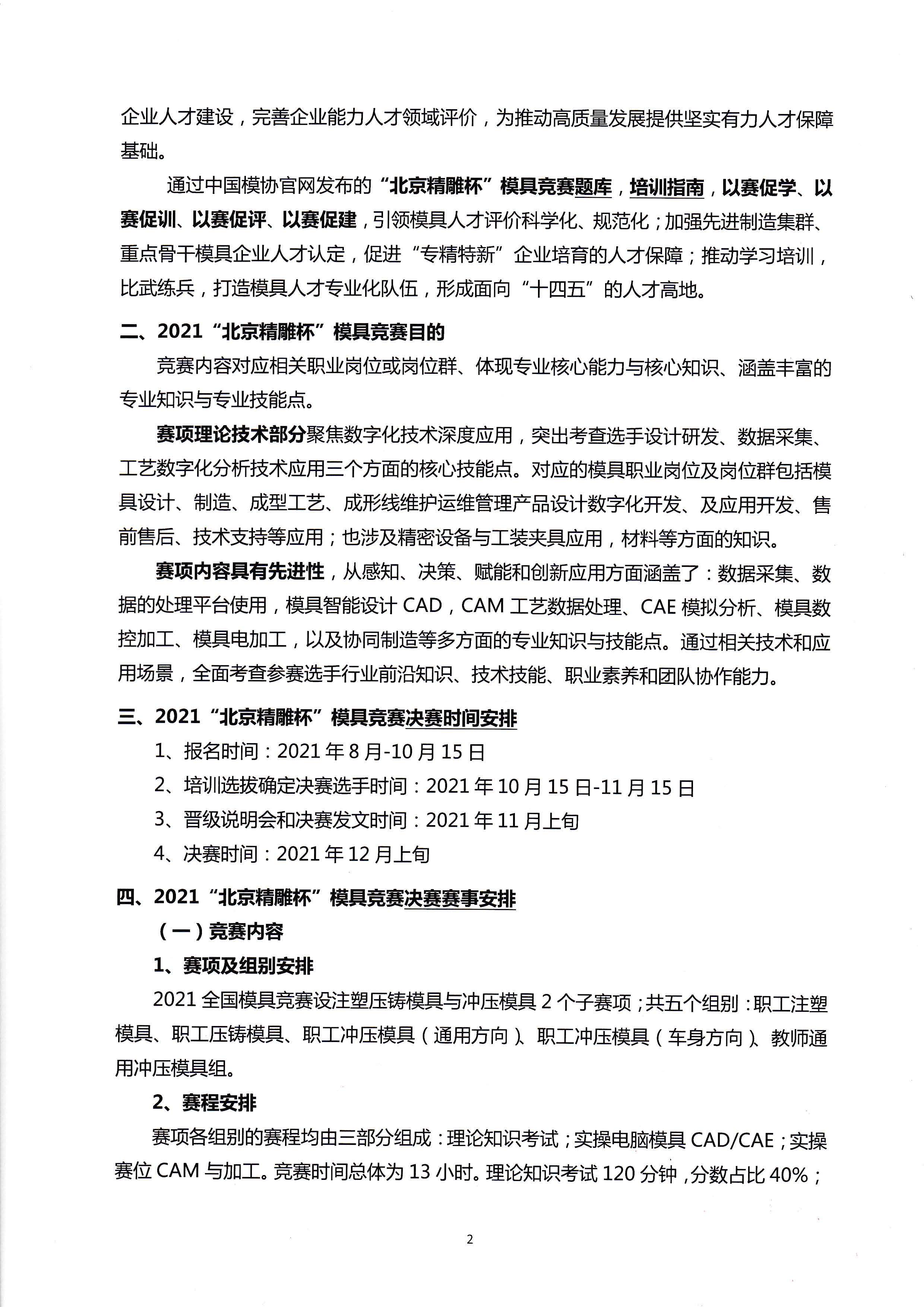 2021年人社部全國行業(yè)職業(yè)技能競賽——第十九屆全國機械行業(yè)職業(yè)技能競賽(“北京精雕杯”模具)報名通知