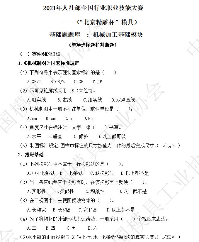 基礎題題庫:機械加工基礎模塊、專(zhuān)用夾具模塊