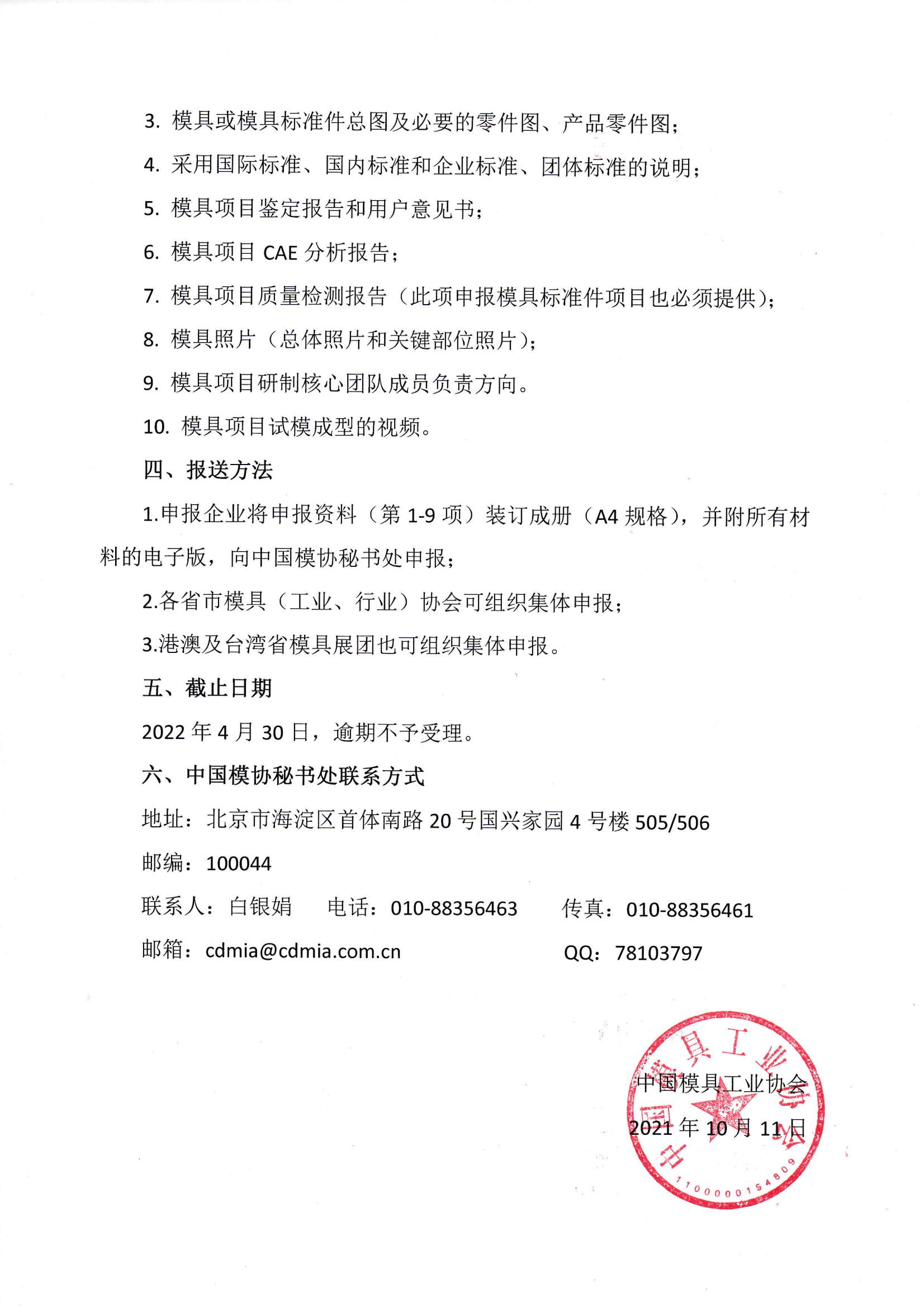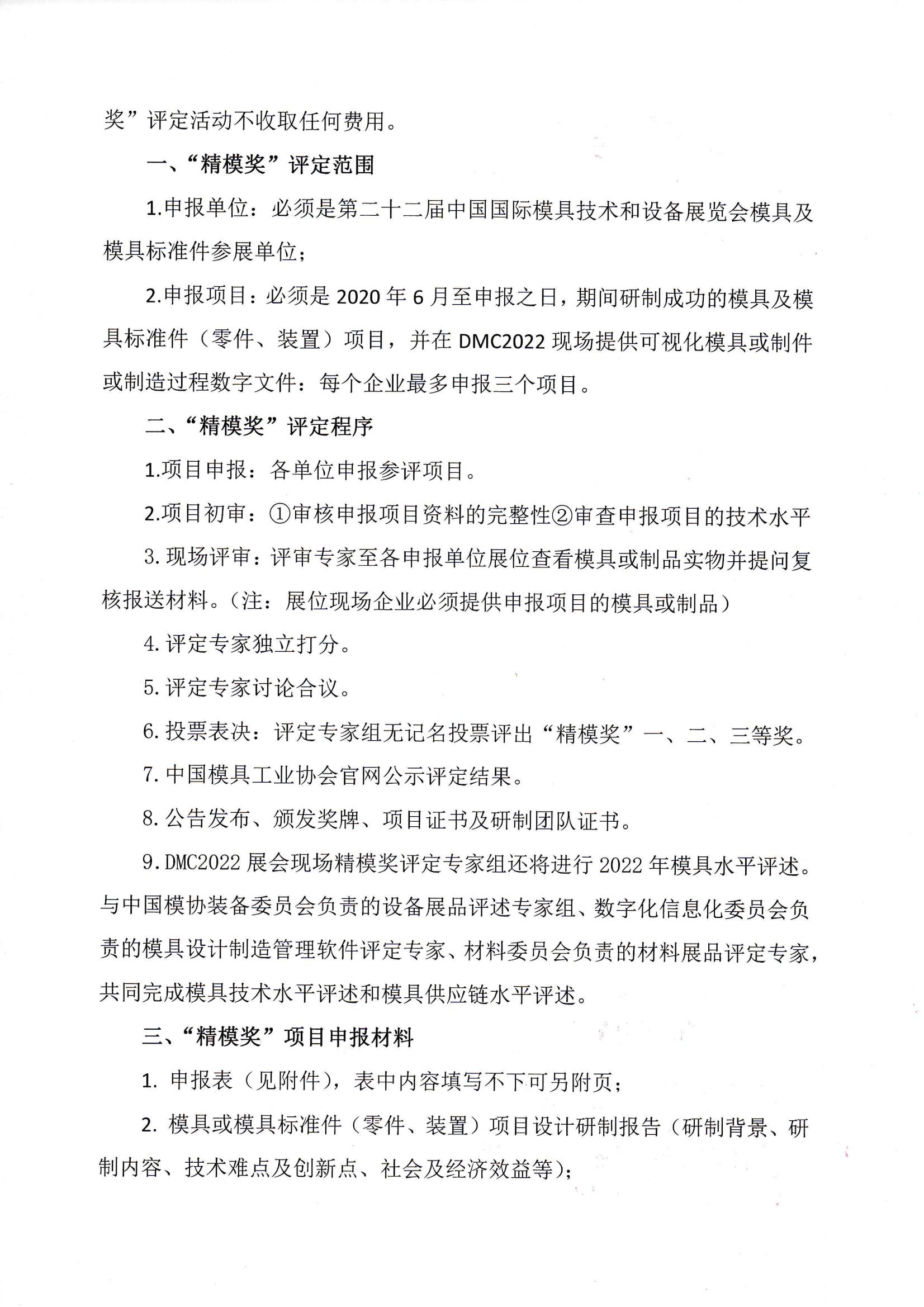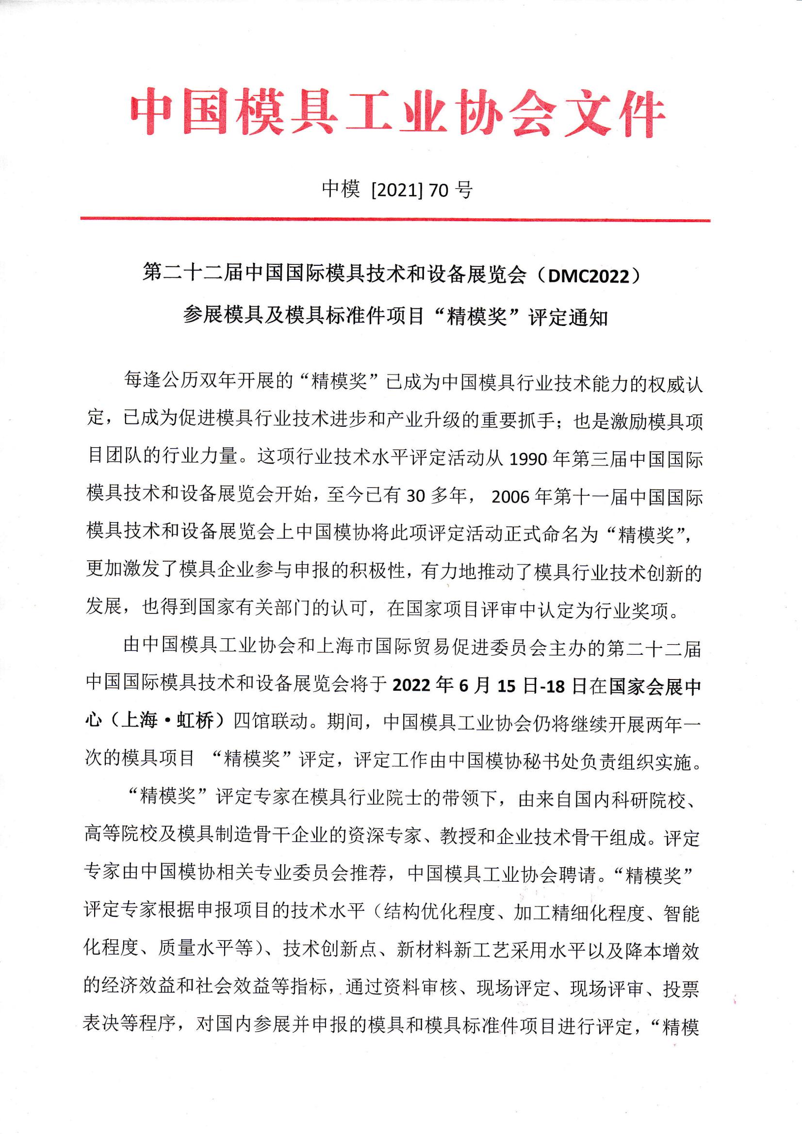 第二十二屆中國國際模具技術(shù)和設備展覽會(huì )(DMC2022) 參展模具及模具標準件項目“精模獎”評定通知