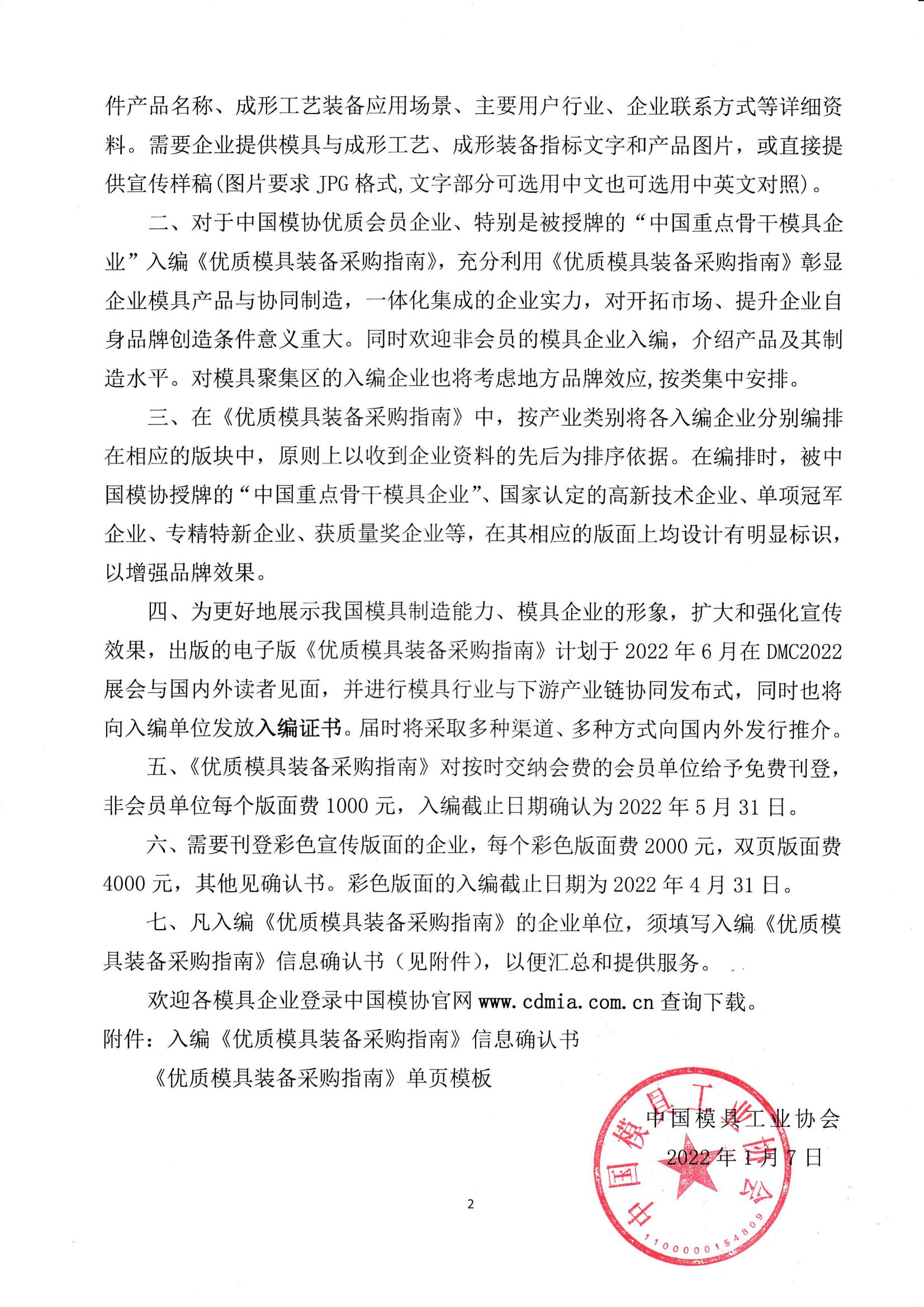 入編《優(yōu)質(zhì)模具裝備采購指南》邀請函