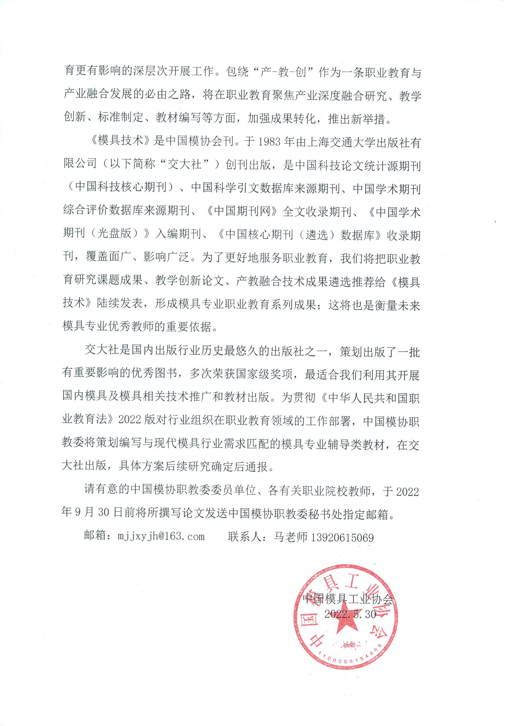 關(guān)于對職業(yè)院校專(zhuān)業(yè)教師理論水平與技術(shù)創(chuàng )新成果收集并在《模具技術(shù)》發(fā)表的通知