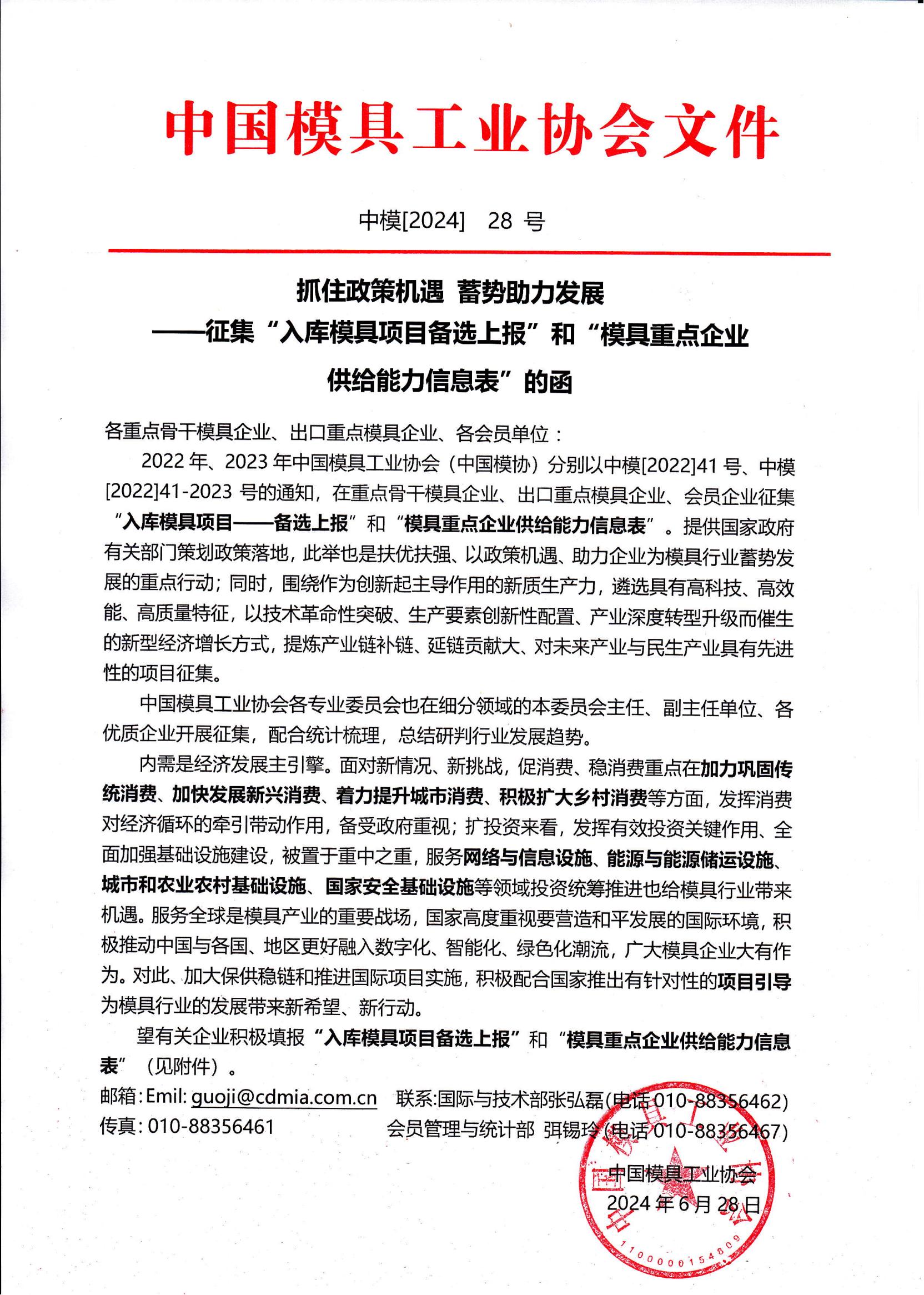 抓住政策機遇 蓄勢助力發(fā)展——征集“入庫模具項目備選上報”和“模具重點(diǎn)企業(yè)供給能力信息表”的函
