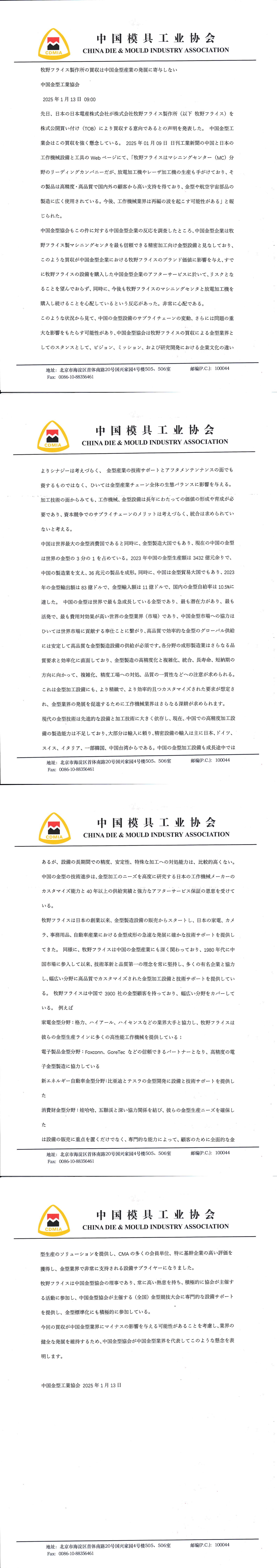 牧野フライ又製作所の買(mǎi)収 は中國金型産業(yè)の発 展に寄與 し本い
